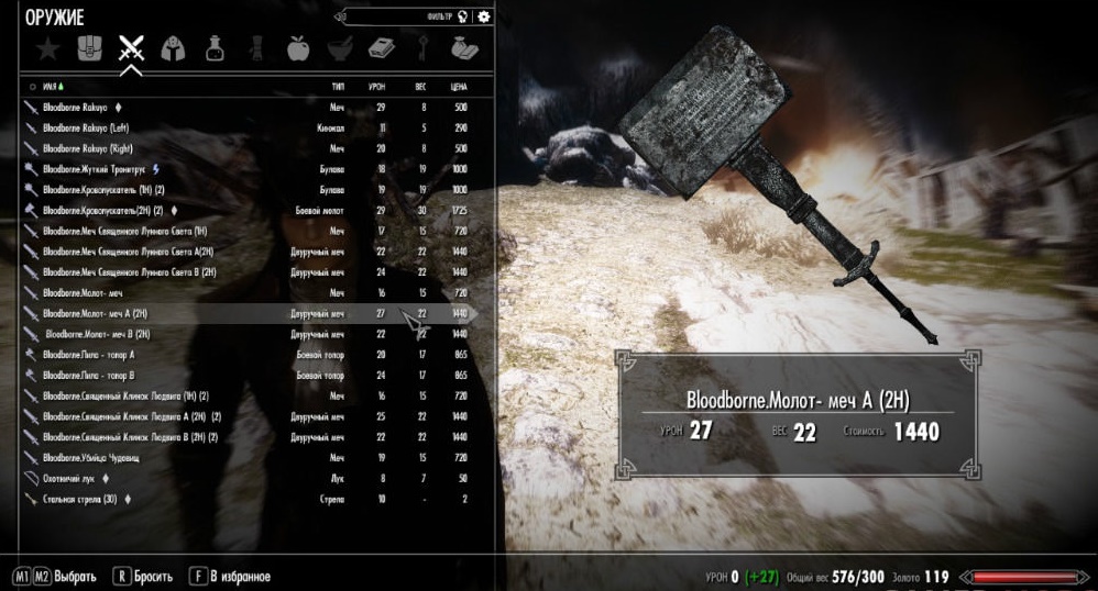 - Bloodborne.Молот - меч В 2Н (урон - 27)