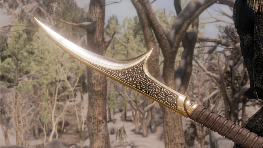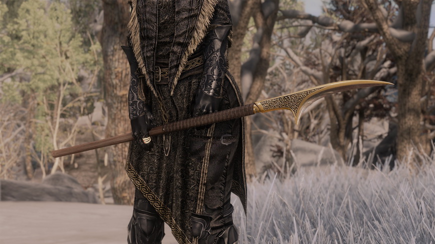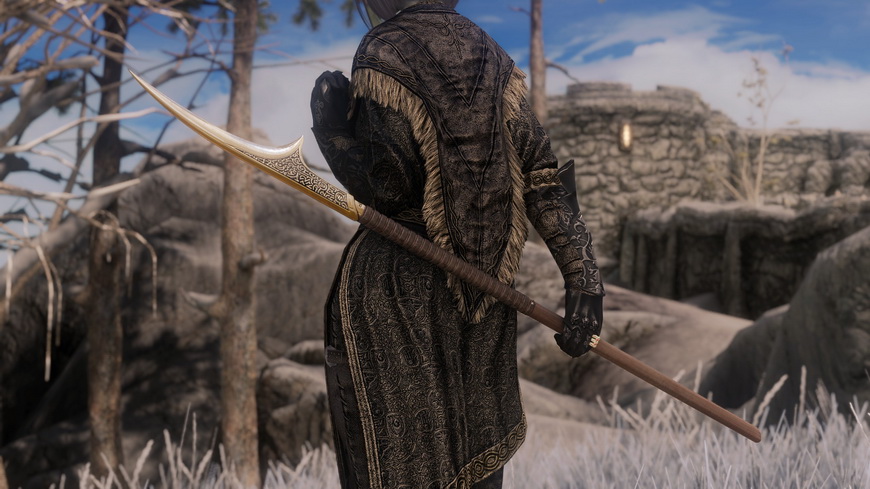 * Мод добавляет в Скайрим новую боевую косу с гравировкой, которая напоминает эбонитовое оружие из Морровинд.