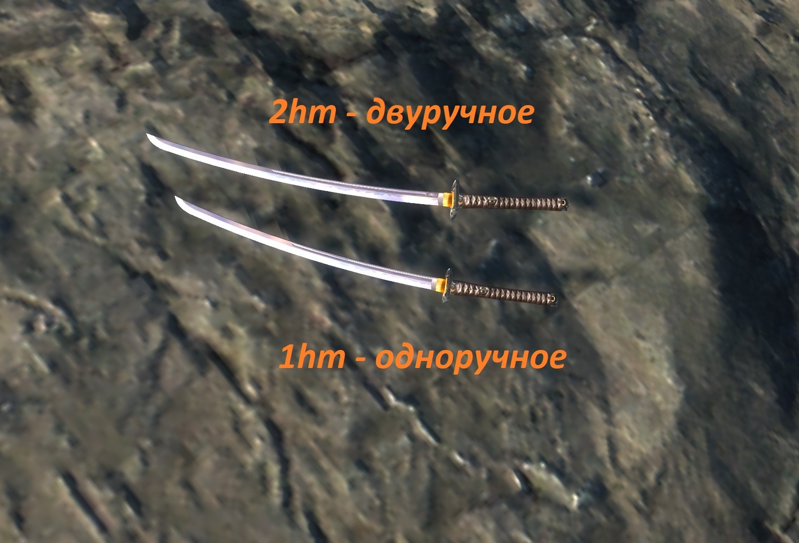 Автор мода сделал всего один вариант катаны - двуручную, затем просто поменял хват с двуручного на одноручную, тем самым одноручная катана в одной руке смотрелась непропорционально длинной и в целом не красивой, мне никогда не нравилось. Я переработал одноручную версию катаны, модель длины лезвия было уменьшено для большего реализма пропорций настоящей катаны (см. картинку), так же немного изменен двуручный вариант и изменено положение хвата.