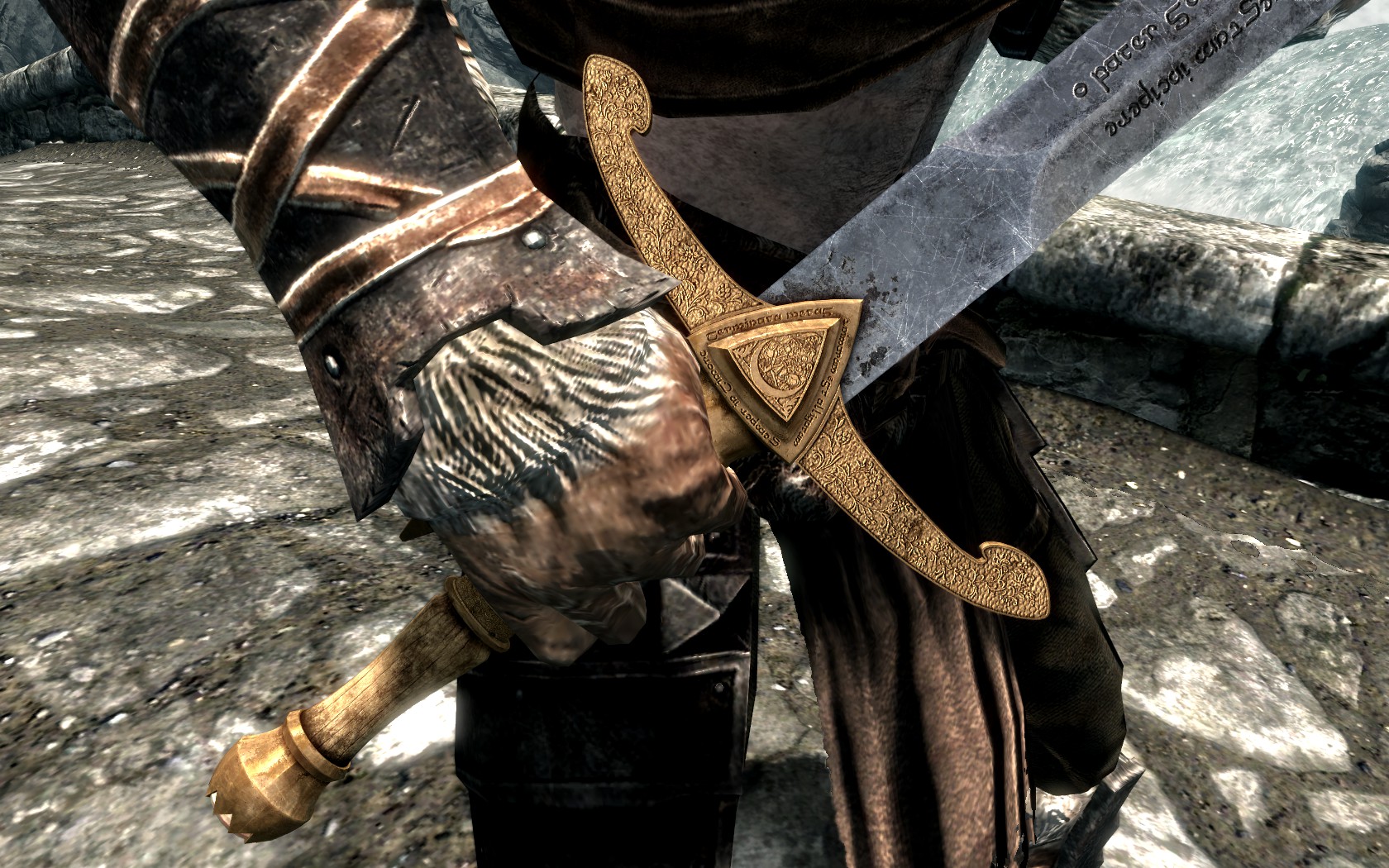 Иначе вы можете создать одноручные и двуручные версии меча, как зачарованные изначально, так и нет, в Небесной кузнице в Вайтране, используя следующие материалы: 1 полено, 1 огненную соль, 1 окровавленные тряпки, 1 молот (кузнечный), 1 инструмент для бальзамирования (конкретно - длинная изогнутая штука), 5 стальных слитков, 3 золотых слитка, 1 заполненный чёрный камень душ.
