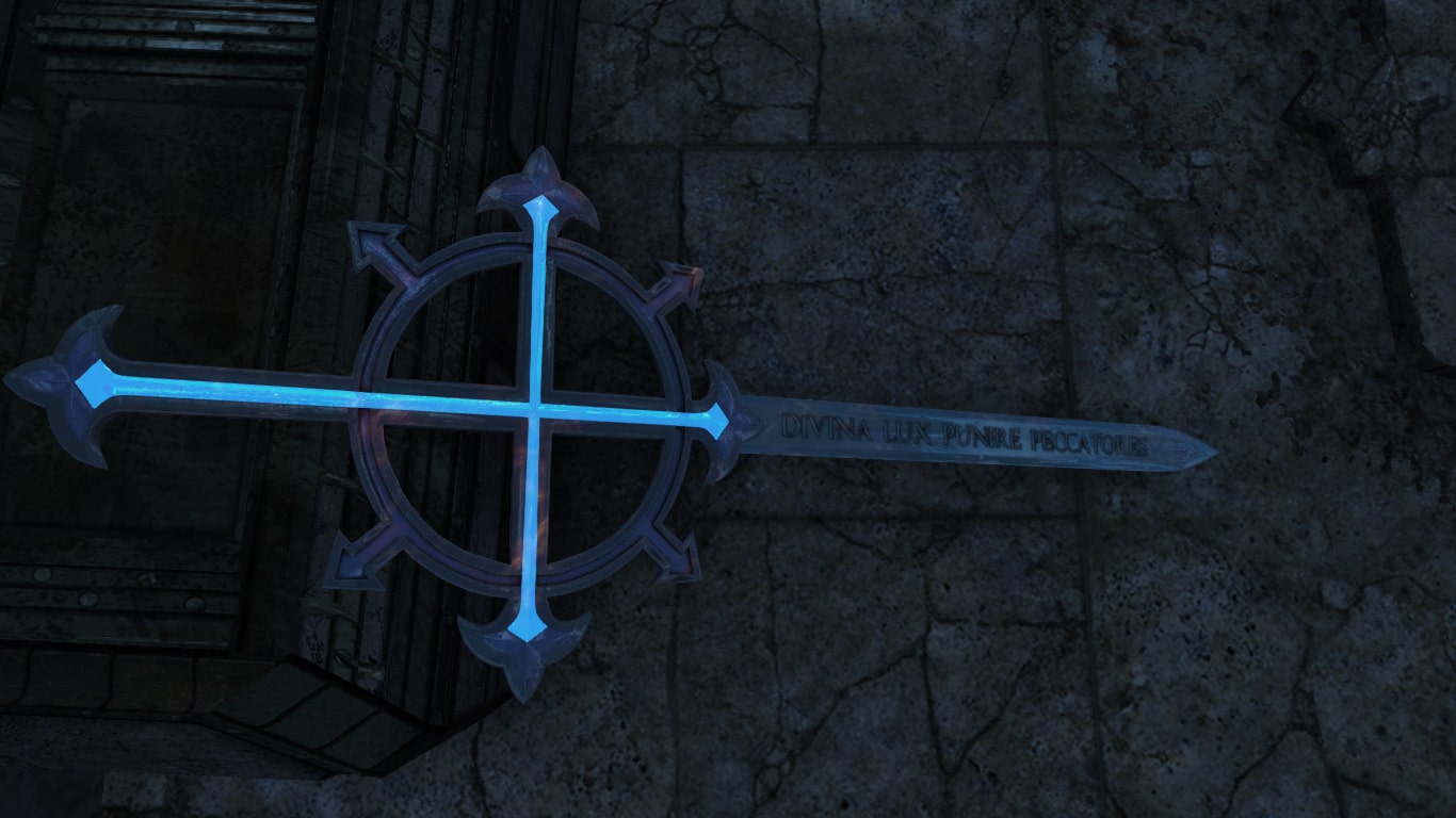 Как получить меч? Меч можно выковать в кузнице в разделе "Даэдрическое" имея соответствующий навык. Также можно найти улучшенную версию меча (Освященный Меч Архангела) в сокровищнице Внутреннего святилища в Забытой долине, для того чтобы попасть в сокровищницу вам понадобится парагон. Улучшенная версия меча имеет больший урон, меньший вес, повышенную скорость и зачарование.