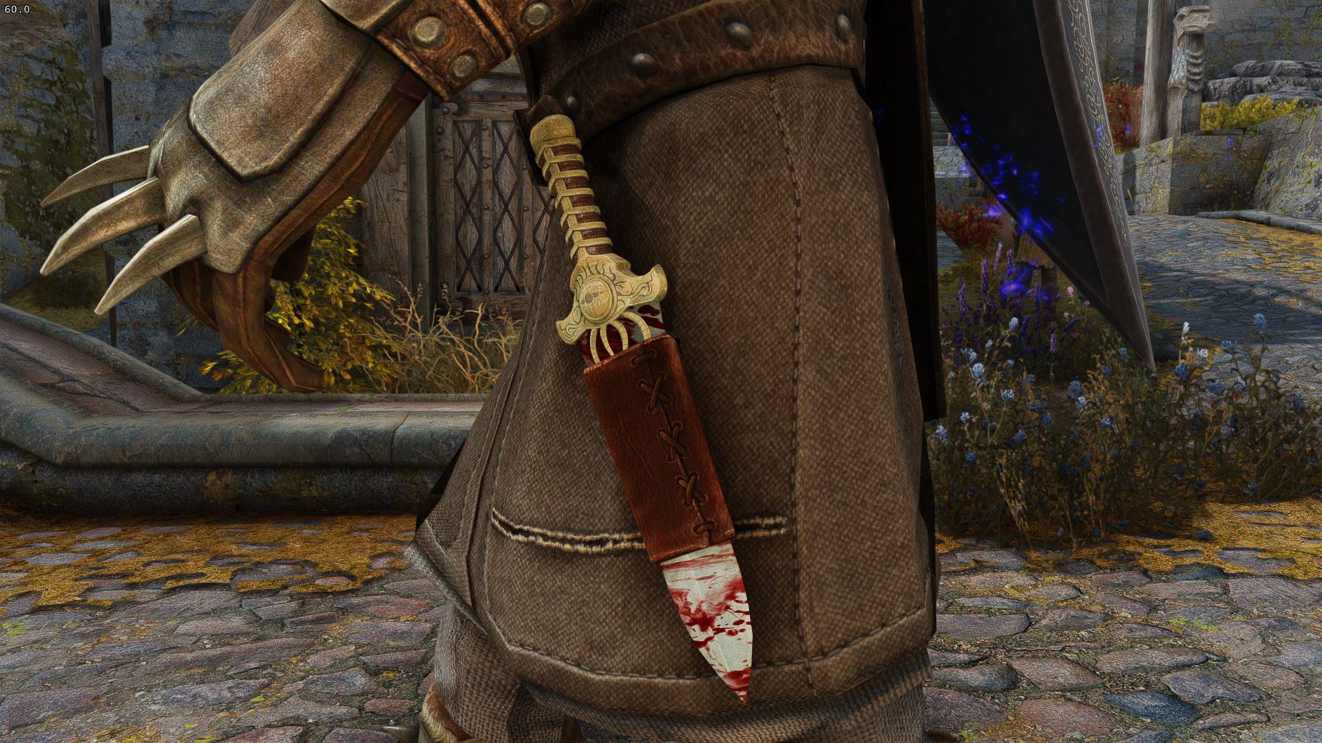 В основной версии кинжал имеет зеленоватый оттенок, который может понравитсья не всем, поэтому опционально доступна замена оттенка клинка на нейтральный. Установите опциональный архив поверх основной версии.