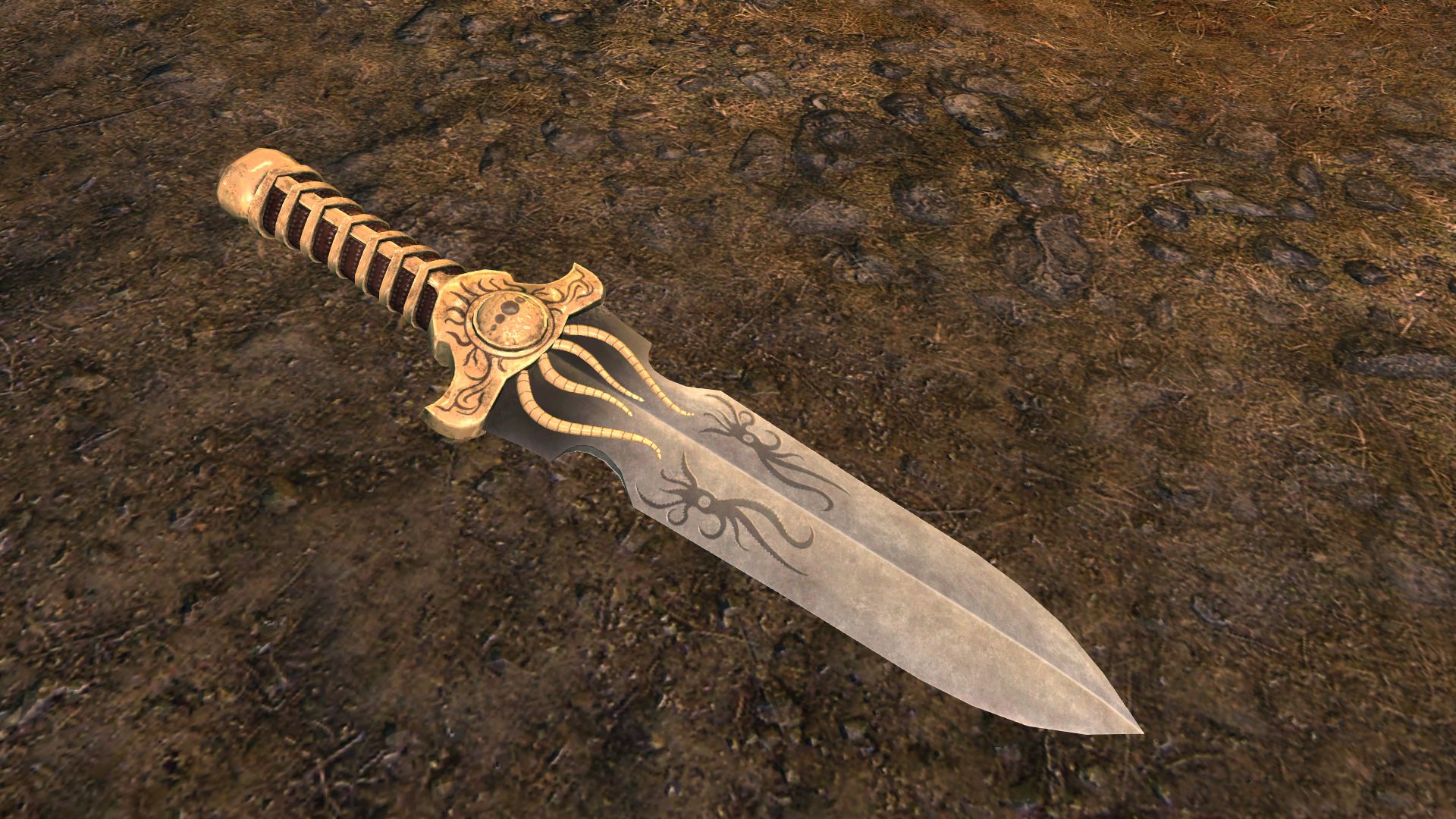 Кинжал имеет особое зачарование, при убийстве им гуманоидного противника он временно повышает магические навыки игрока на 5 единиц вплоть до 30 единиц, это 6 жертв. Его базовые характеристики идентичны стеклянному кинжалу, но он относится к категории стального оружия и на его заточку влияет соответствующий перк.