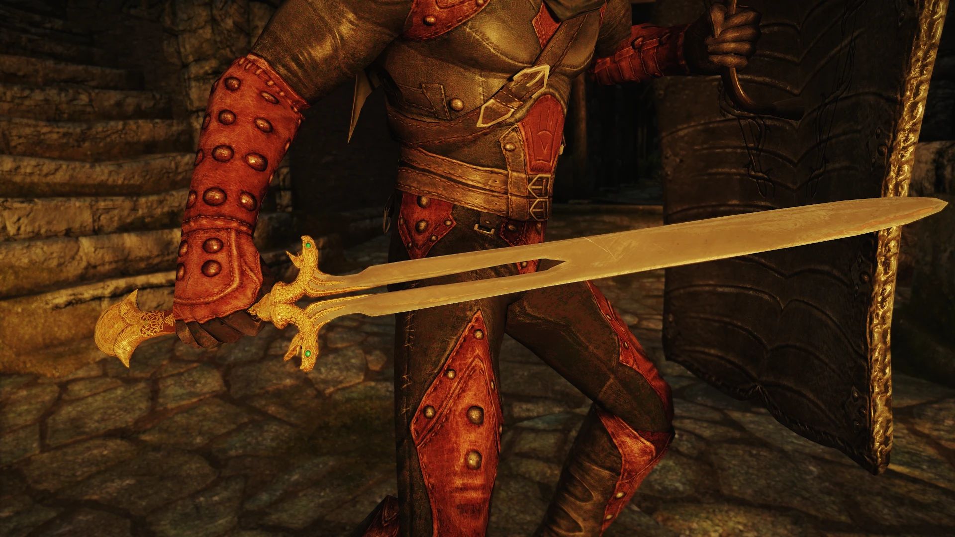 Я добавил совершенно новое оружие и щит из Замка Боевого Рога Обливиона, которыми вы можете наслаждаться в Скайриме с разрешением до 4K. Драконий меч Лэйнлина и оплот лорда Кельвина можно найти в убежище Дрифтшейд.