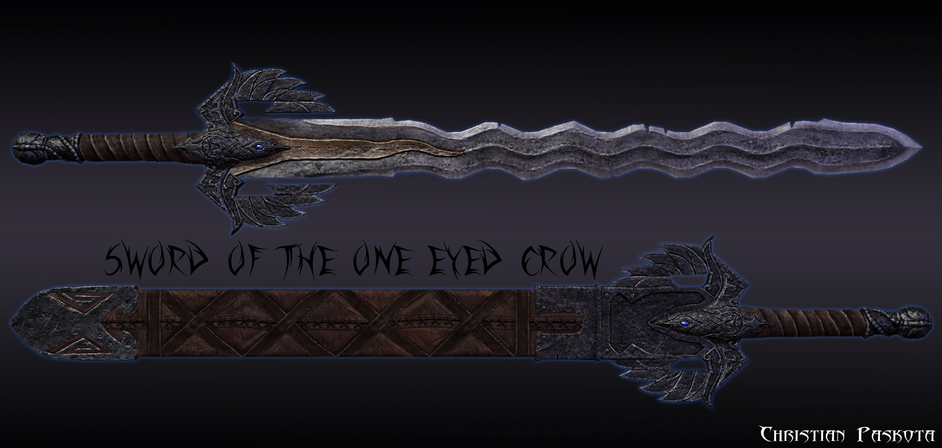 Плагин добавляет прекраснейший меч одноглазого ворона, дошедший до нас из древней эпохи, когда первые драконы рассекали небеса Скайрима. Вы можете купить меч у Йорлунда Серая Грива или же выковать его самостоятельно, для этого вам потребуется: 3 эбонитовых слитка, 2 стальных, 3 полоски кожи, 2 куска кожи, 2 сапфира.