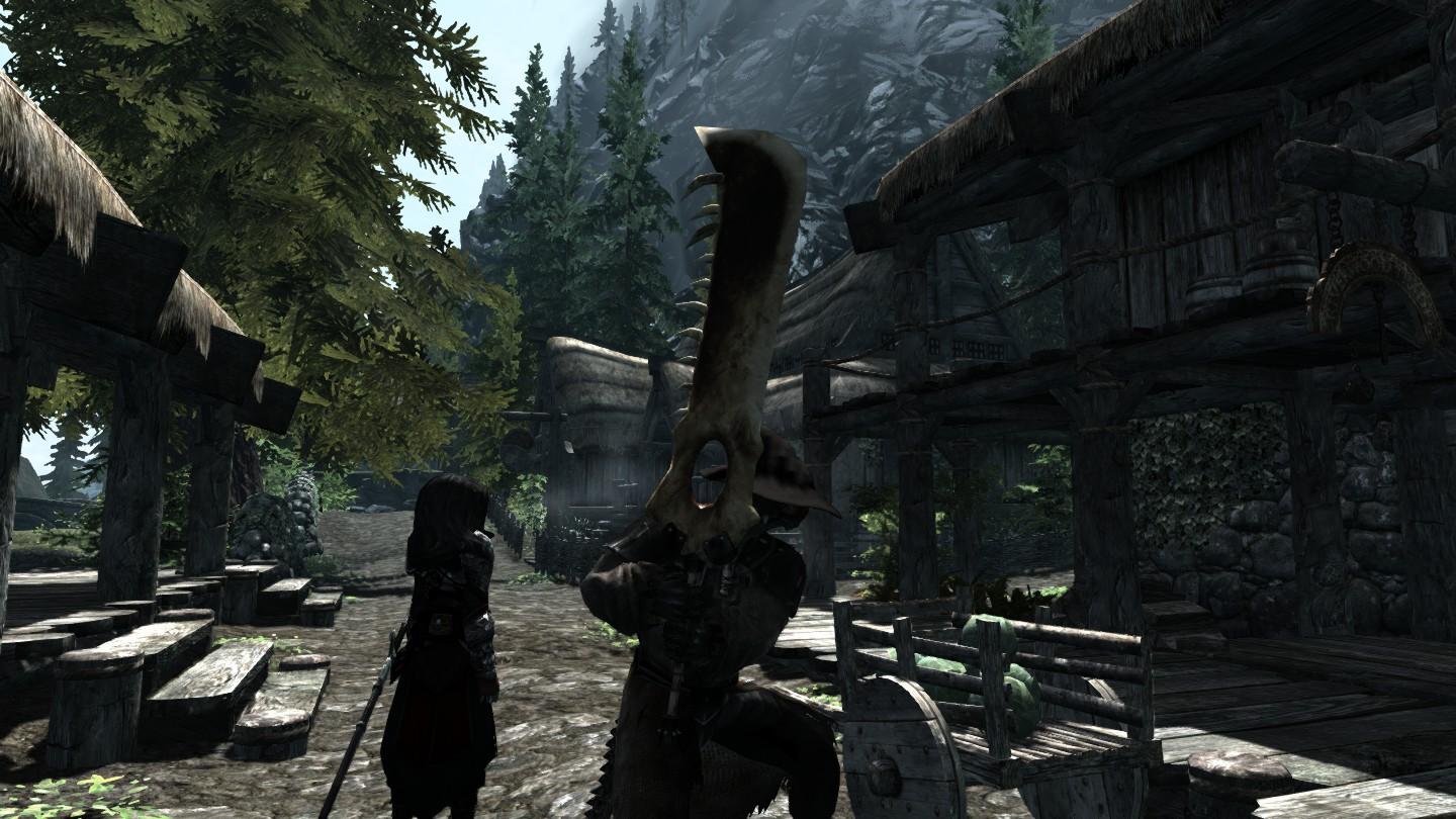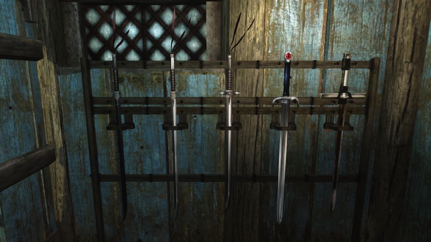 Плагин добавляет новое оружие: одноручные мечи, двуручные мечи и даже косу. Вы можете самостоятельно выковать оружие в кузнице (разделы стального, эбонитового, драконьего, оркского, разного).