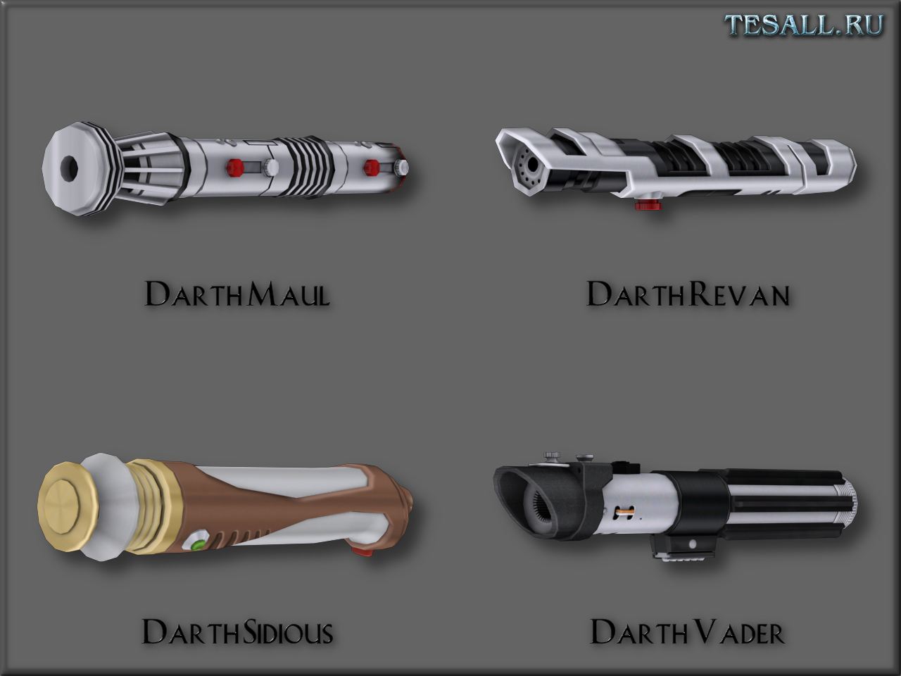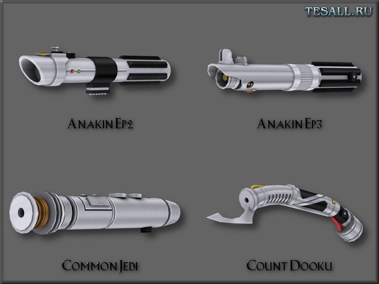 Опционально в архиве Star Wars Hilts Replacer идут реплейсеры мечей, заменяющие и модели и текстуры. Меняет стиль рукоятей световых мечей на оригинальные из Звездных войн, например: Анакина эпизод 2 и 3, обычный джедайский, Дарта Мола, Дарта Ревана, Дарта Сидиуса, Дарта Вейдера и другие.