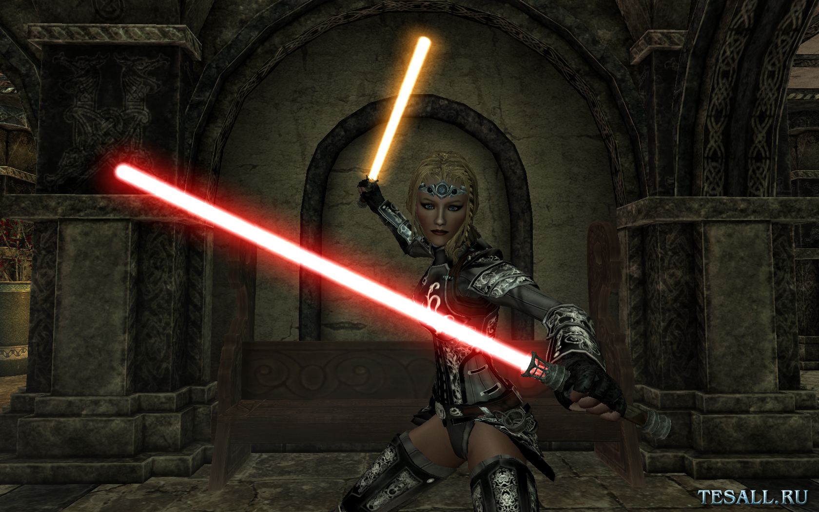 Добавляет магические мечи - фентези-вариант световых мечей из Звездных Войн. 8 цветов, каждый - в двуручной и одноручной версии. У мечей собственная озвучка, особое зачарование. Базовый урон 17, базовый вес 4, базовая цена 2000.