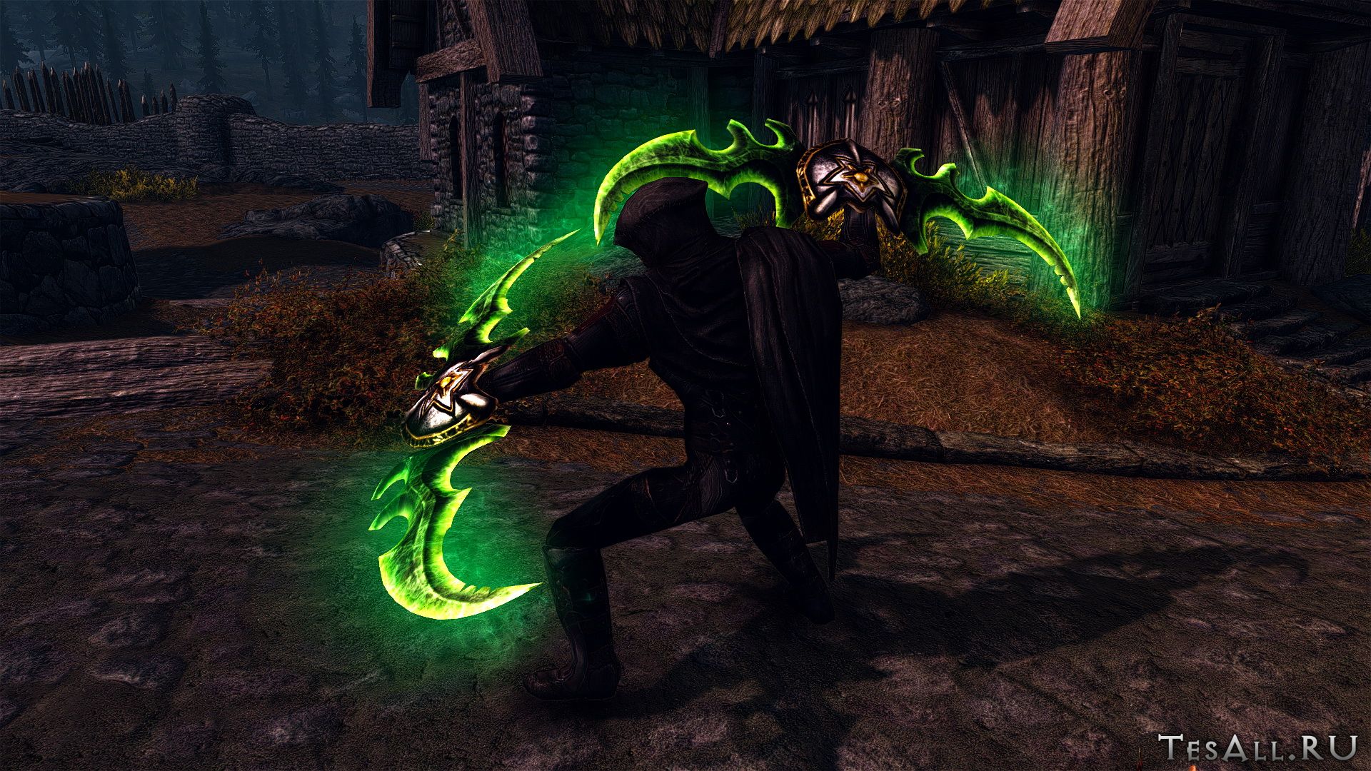 Плагин добавляет в Скайрим парные клинки Аззинота из вселенной Варкрафта, где ими владел Иллидан Ярость Бури.