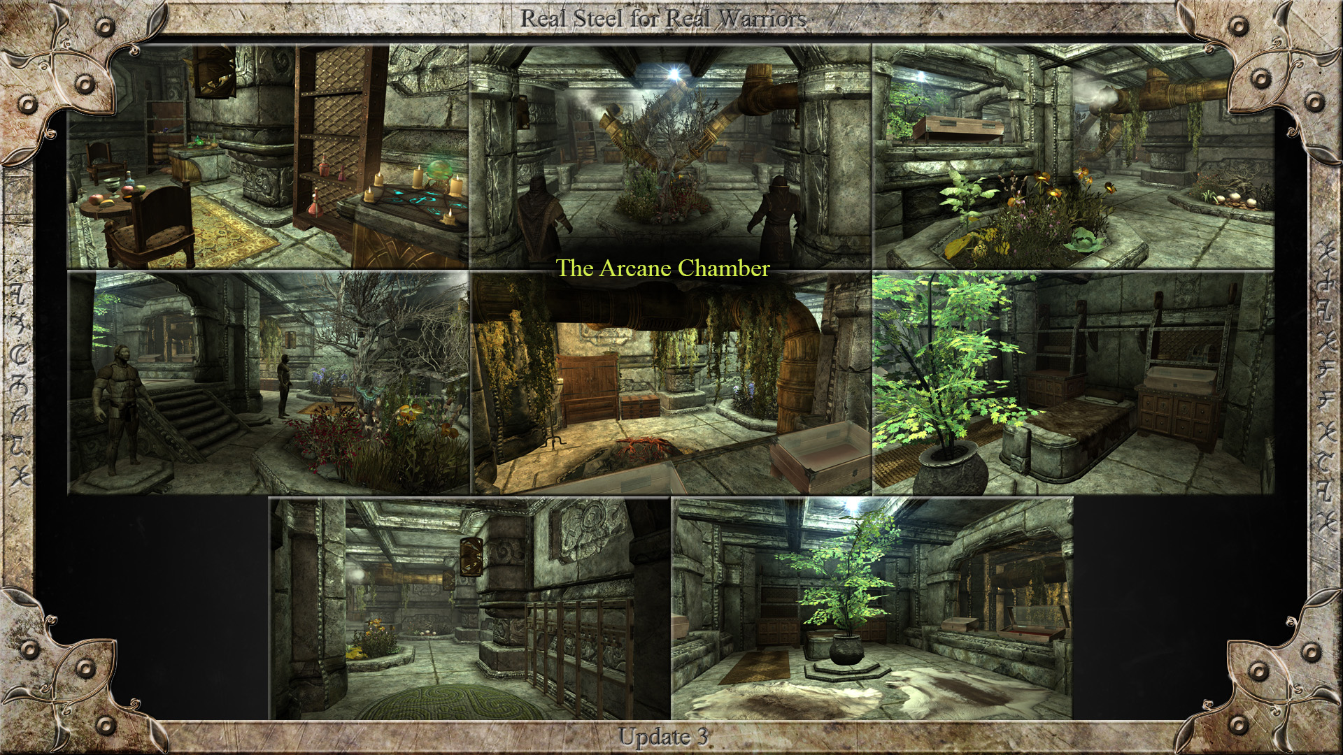 Комната магии содержит лабораторию алхимика и стол зачарователя, 2 манекена, оружейные стойки, витрины, контейнеры и сад ингредиентов.
