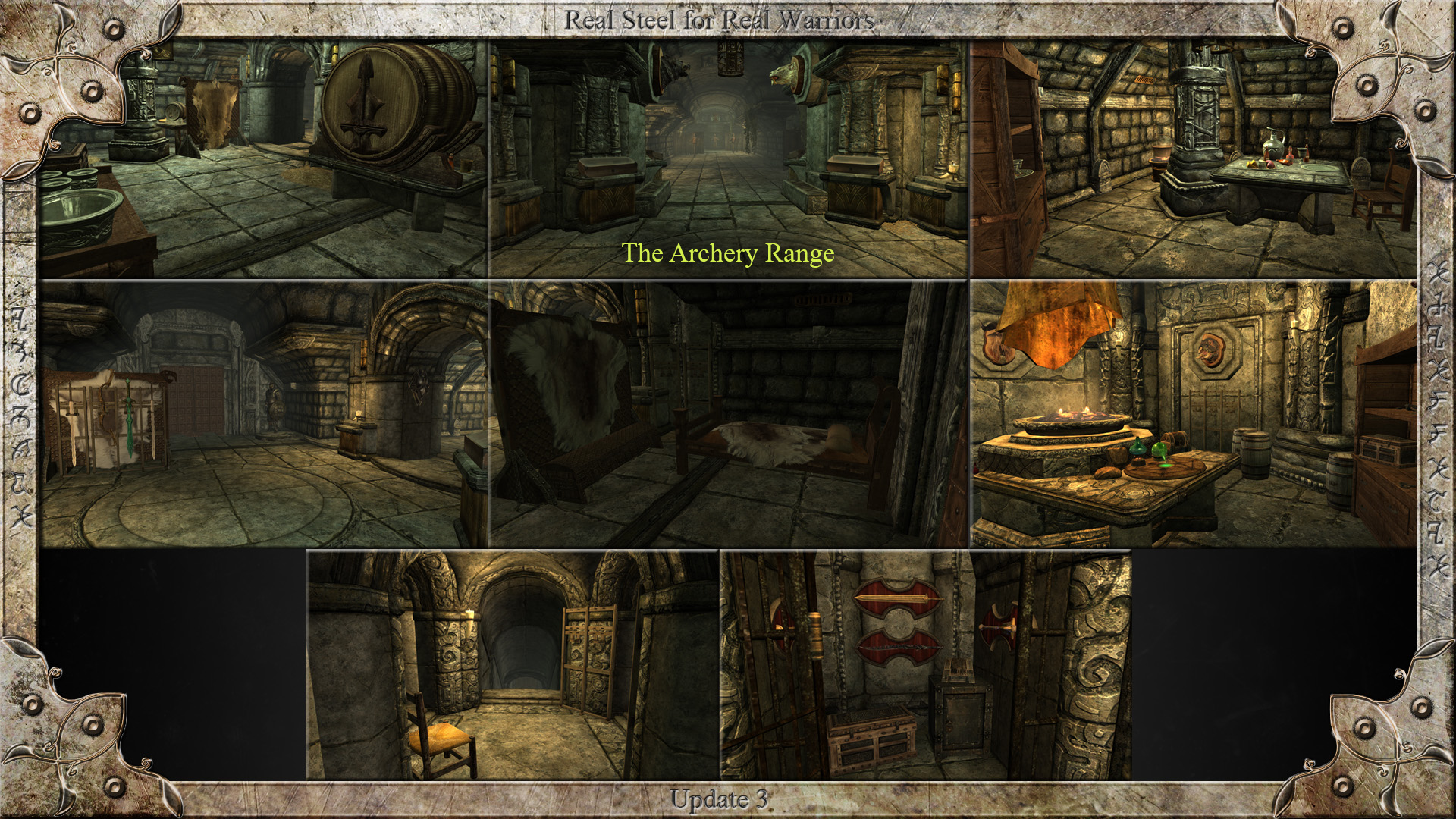 Комнаты для лучников со стрельбищем, контейнерами, манекенами, оружейными стойками, витринами, секретной алхимической лабораторией для ассасинов и тайную сокровищницу/оружейную для воров.