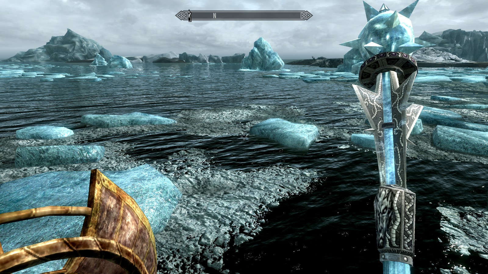 У булавы есть и стандартные Скайримские текстуры, так что при смене текстур льда внешний вид ее может измениться. Лучше всего играть с Real Ice.