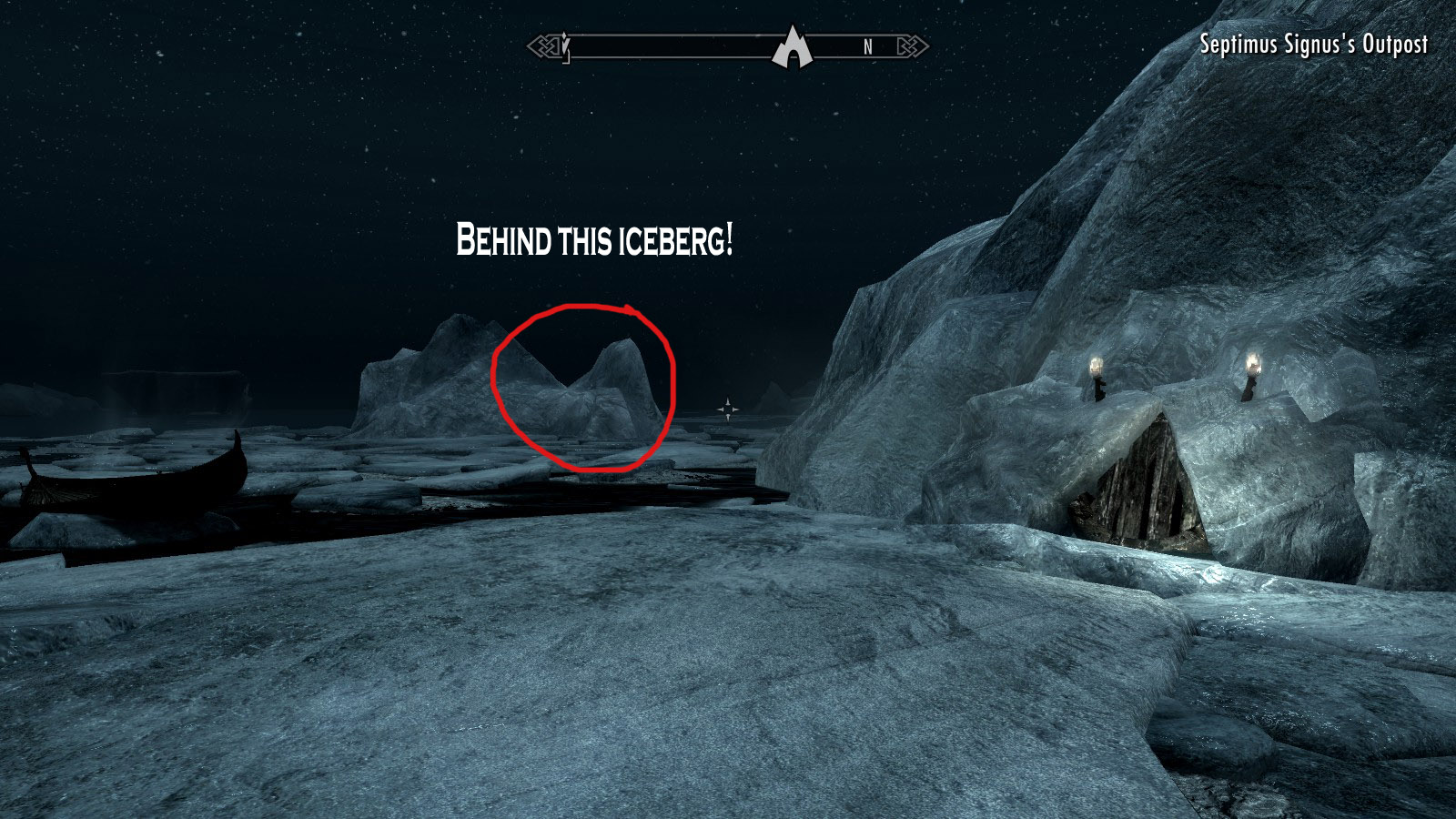 Чтобы найти булаву, отправляйтесь к посту Септимия Сегония и на соседнем айсберге увидите запертый сундук. Рядом лежит книга с ключом.