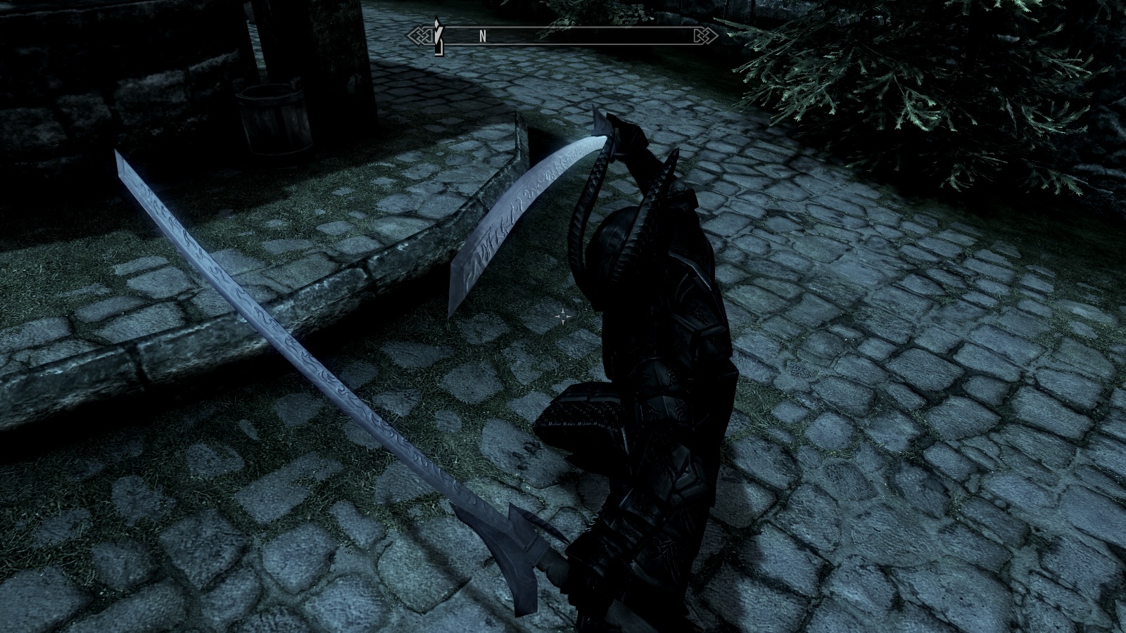 Плагин добавляет интересный одноручный клинок под названием "Теневая катана", который можно выковать и в дальнейшем всячески улучшить, по характеристикам данный клинок превосходит даэдрическое вооружение, а также имеет зачарование схожее с наложенным на Бритве Меруна. Ленящиеся собирать материалы для изготовления клинка, могут найти клинок в доме Аретино в Виндхельме, но он хорошо спрятан.