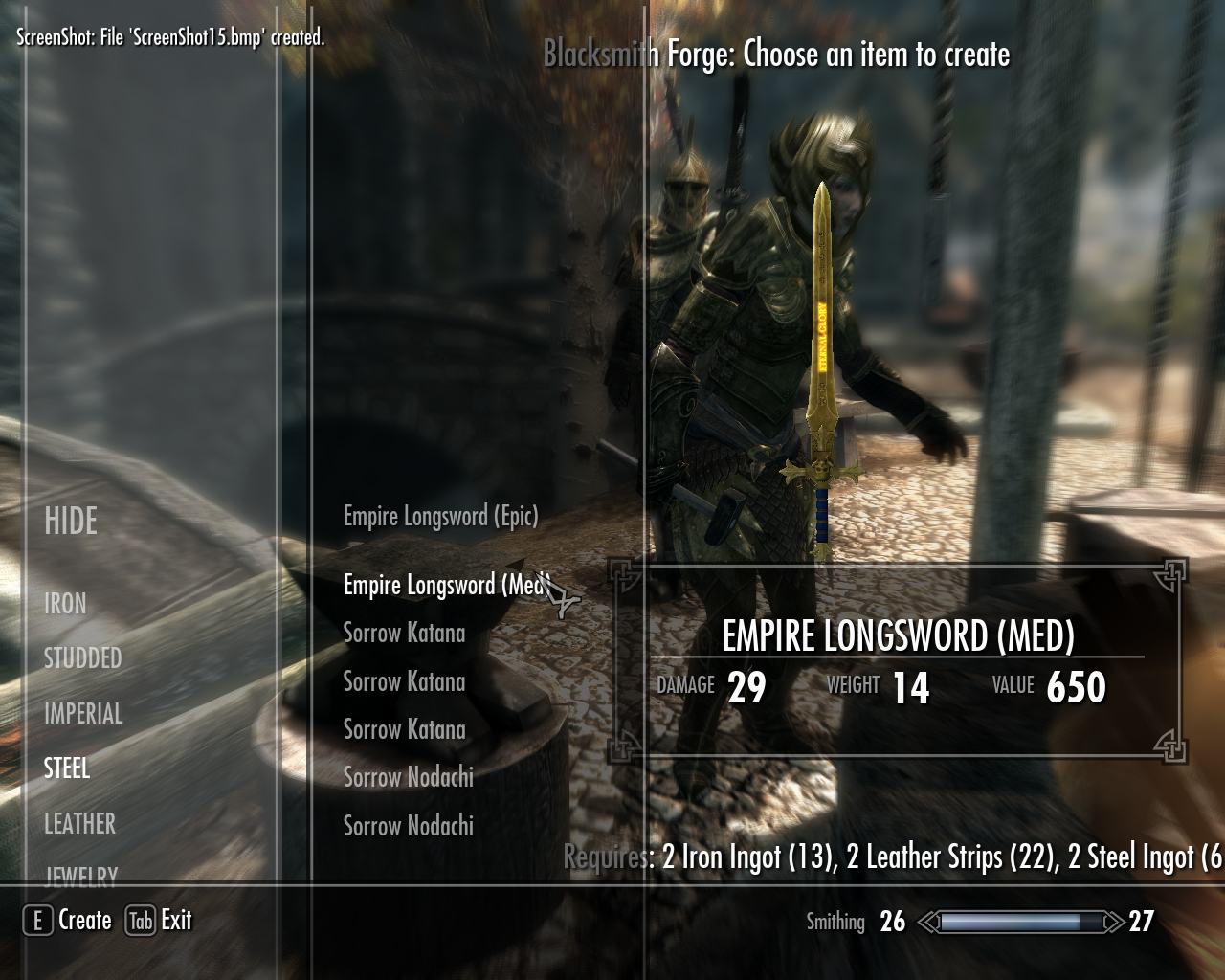 Мечи идут в двух вариантах: простые имперские и великолепные имперские. У простых урон чуть меньше эбонитовых, у великолепных чуть больше даэдрических.