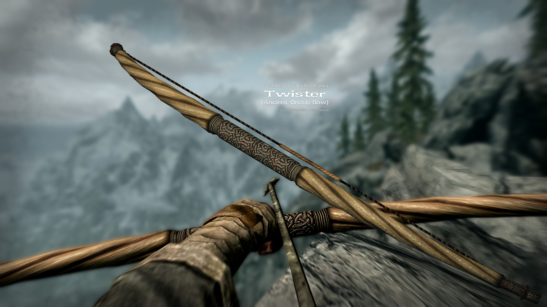 Добавляет игру древний оркский деревянный лук, имеющий собственную модель и текстуру. По характеристикам он соответствует эбонитовому луку. Его можно улучшать и зачаровывать. Вы можете найти лук в руинах "Вершина Северный Ветер"