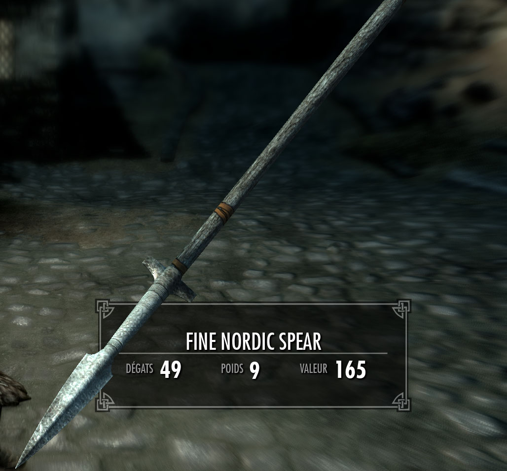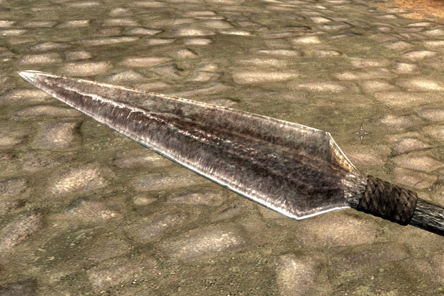 Добавляет в Скайрим копья. Это оружие в сравнении с другим двуручным имеет большую длину, скорость и критический удар. Базовый урон копья находится между секирой и боевым молотом.