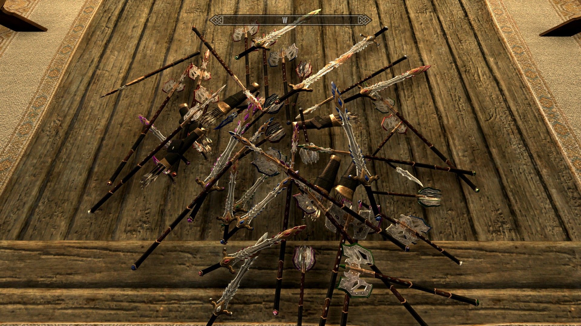 Плагин добавляет новый вид оружия из драгоценных камней (длинный меч, лук, двуручный меч, булава, боевой топор, копье, секира, стрелы, болты, алебарда, арбалет, кинжал).