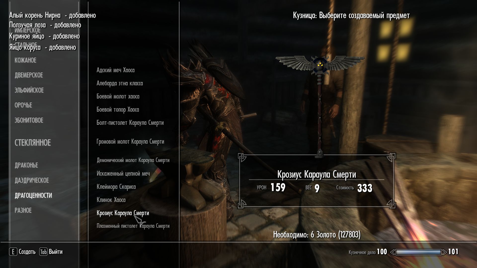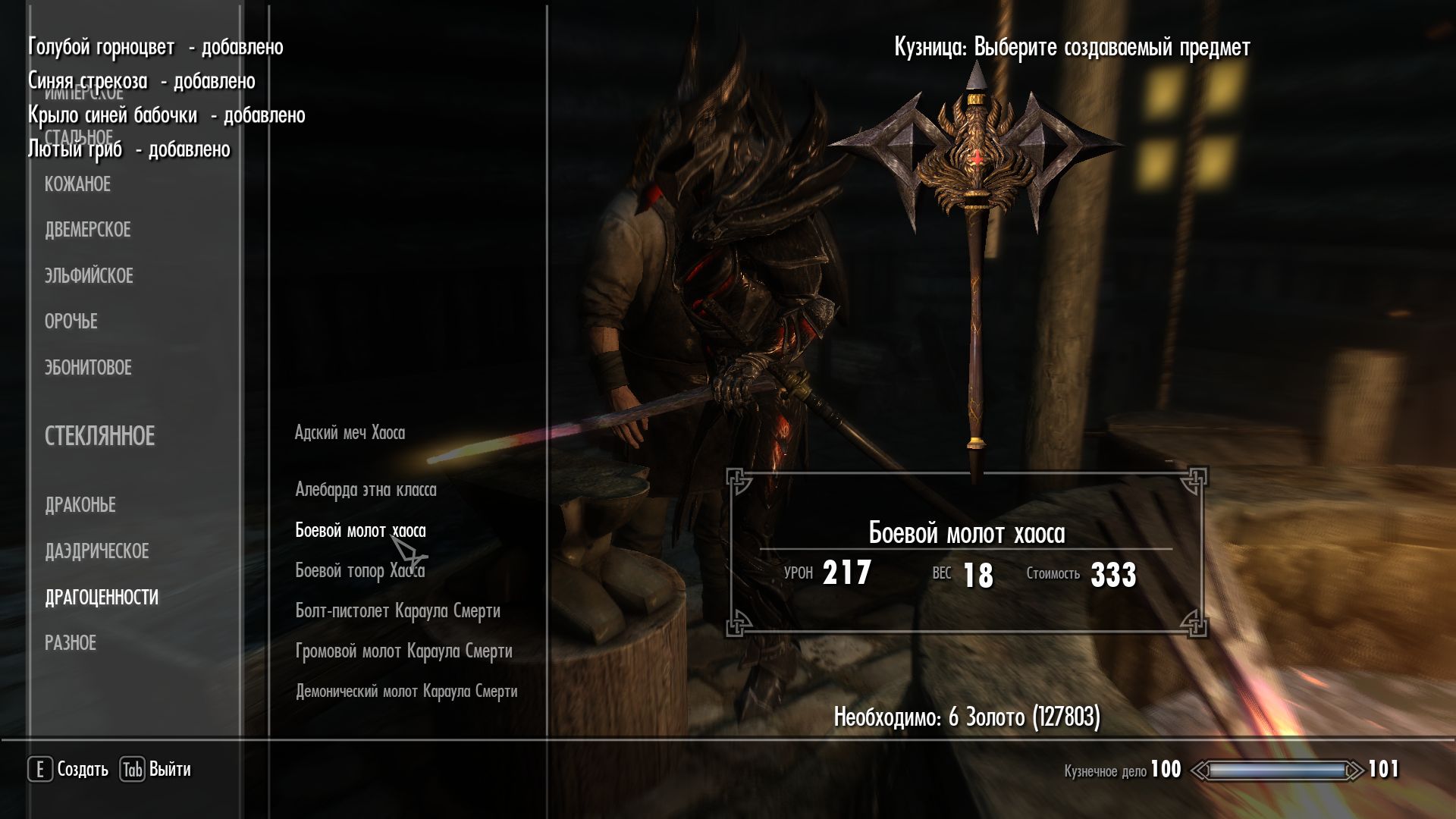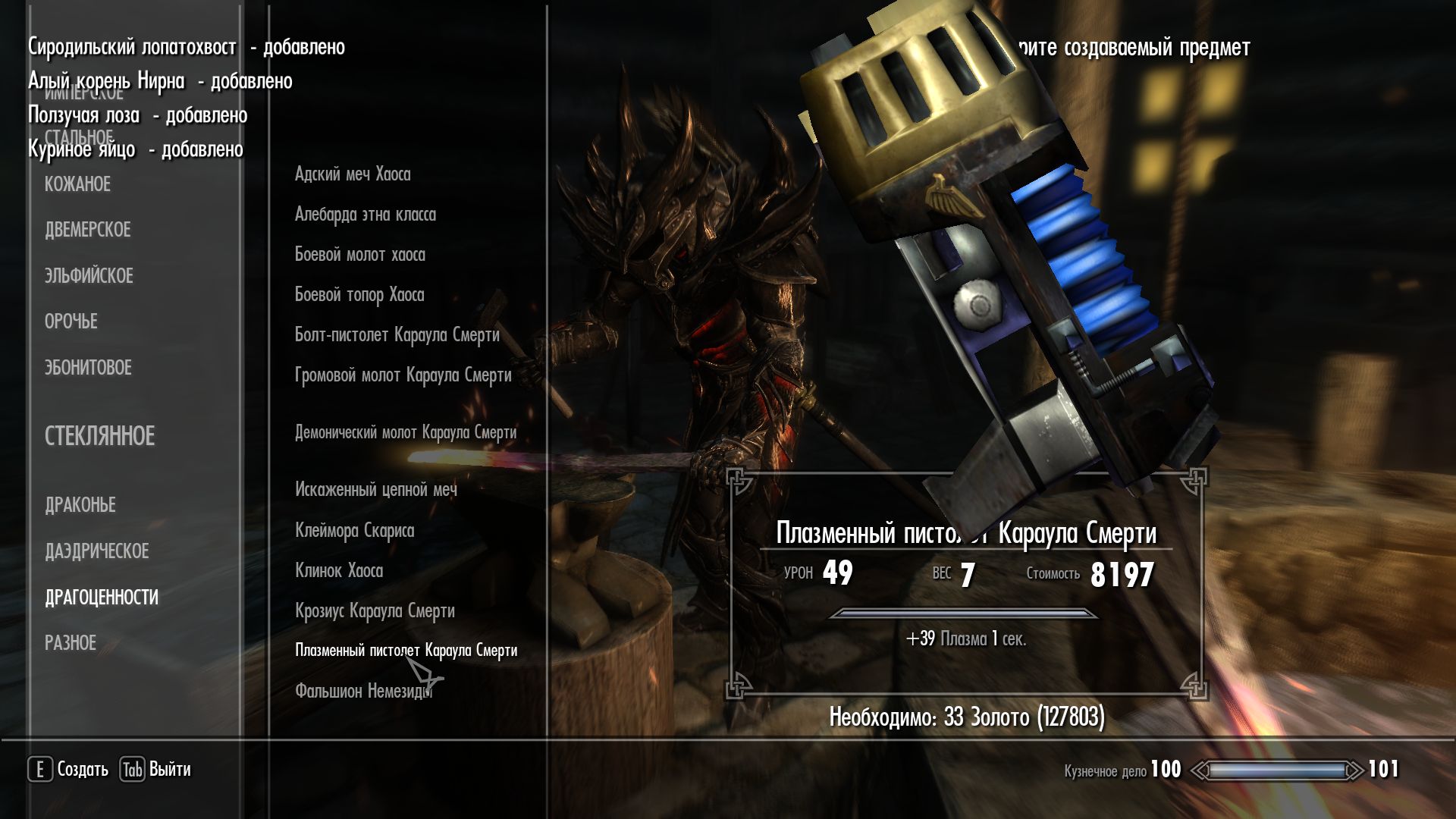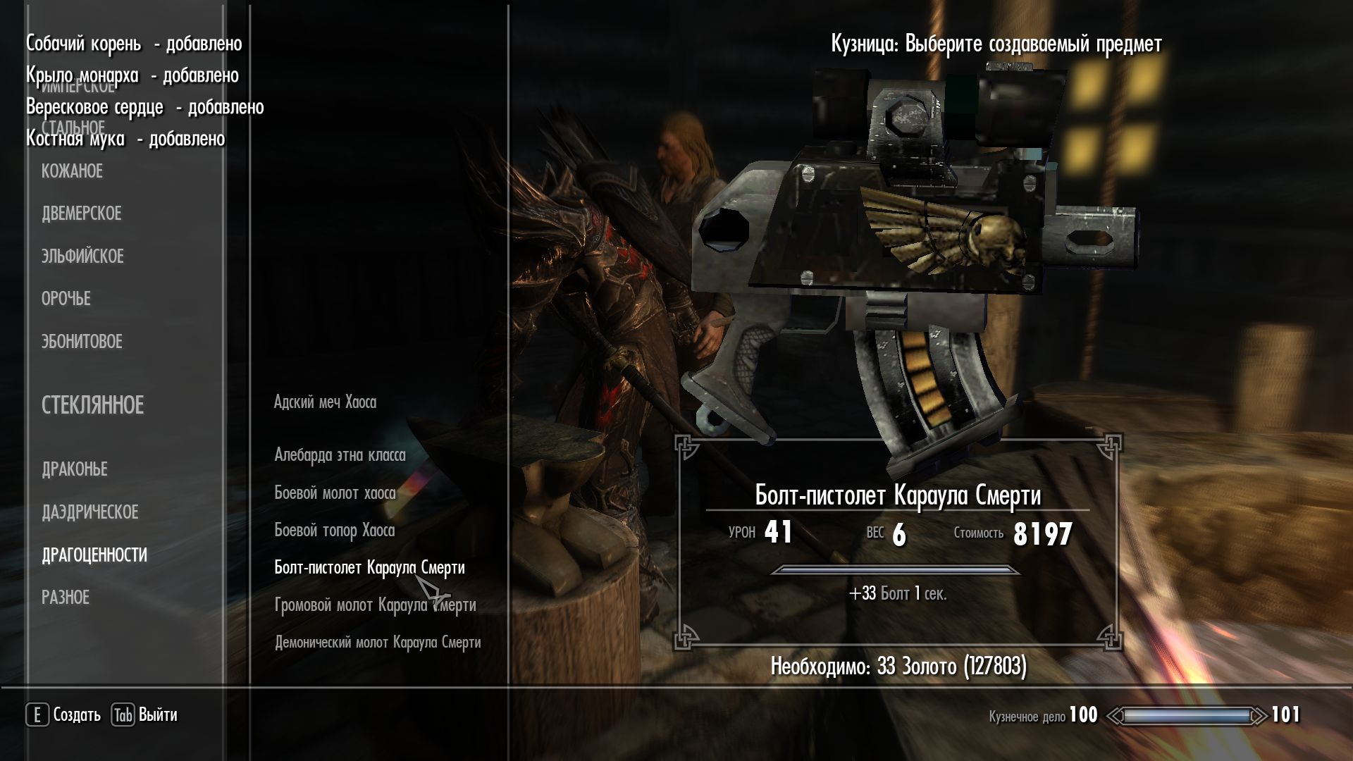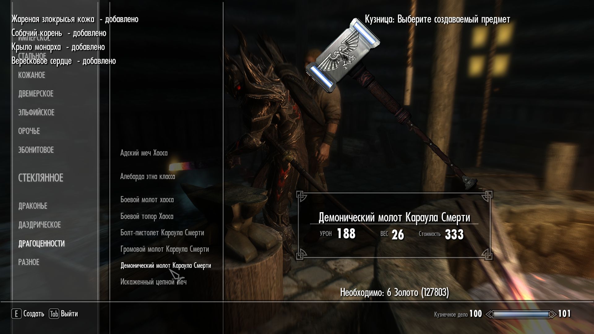 Добавляет 17 орудий из вселенной Вархаммера в Скайрим. Среди них 2 дальнобойных и 15 ближнего боя. Оружие создается в кузнице за золото, проверьте раздел разного.