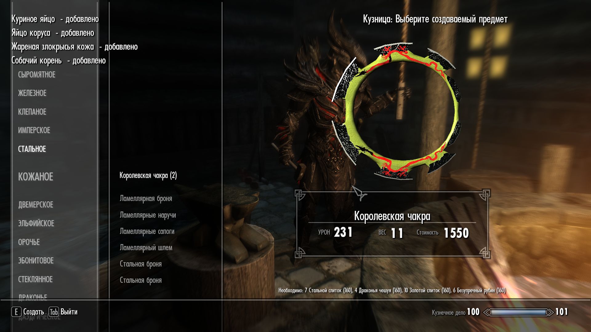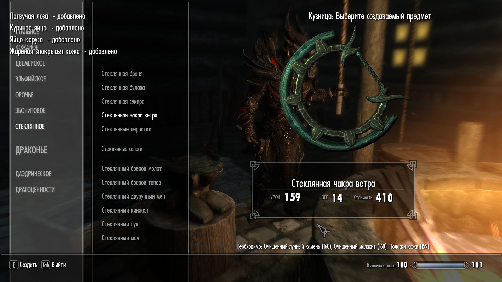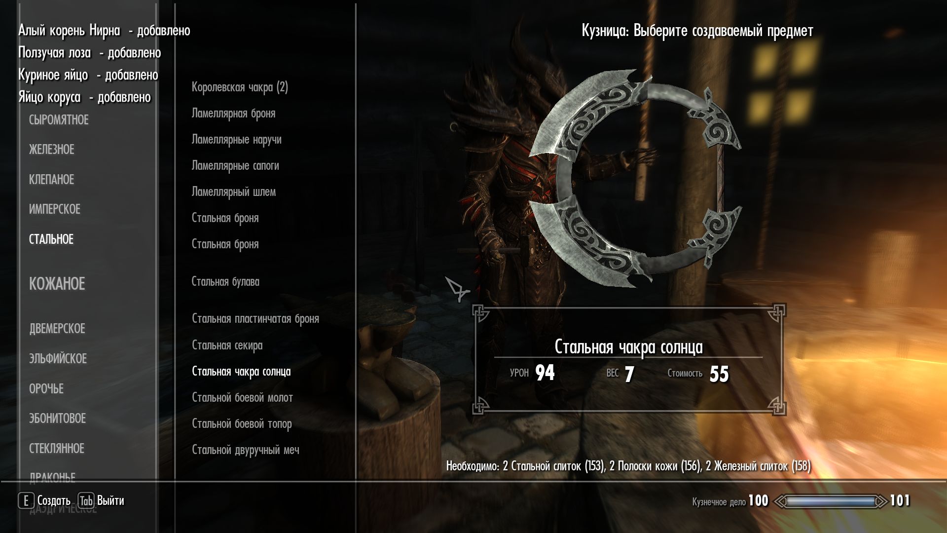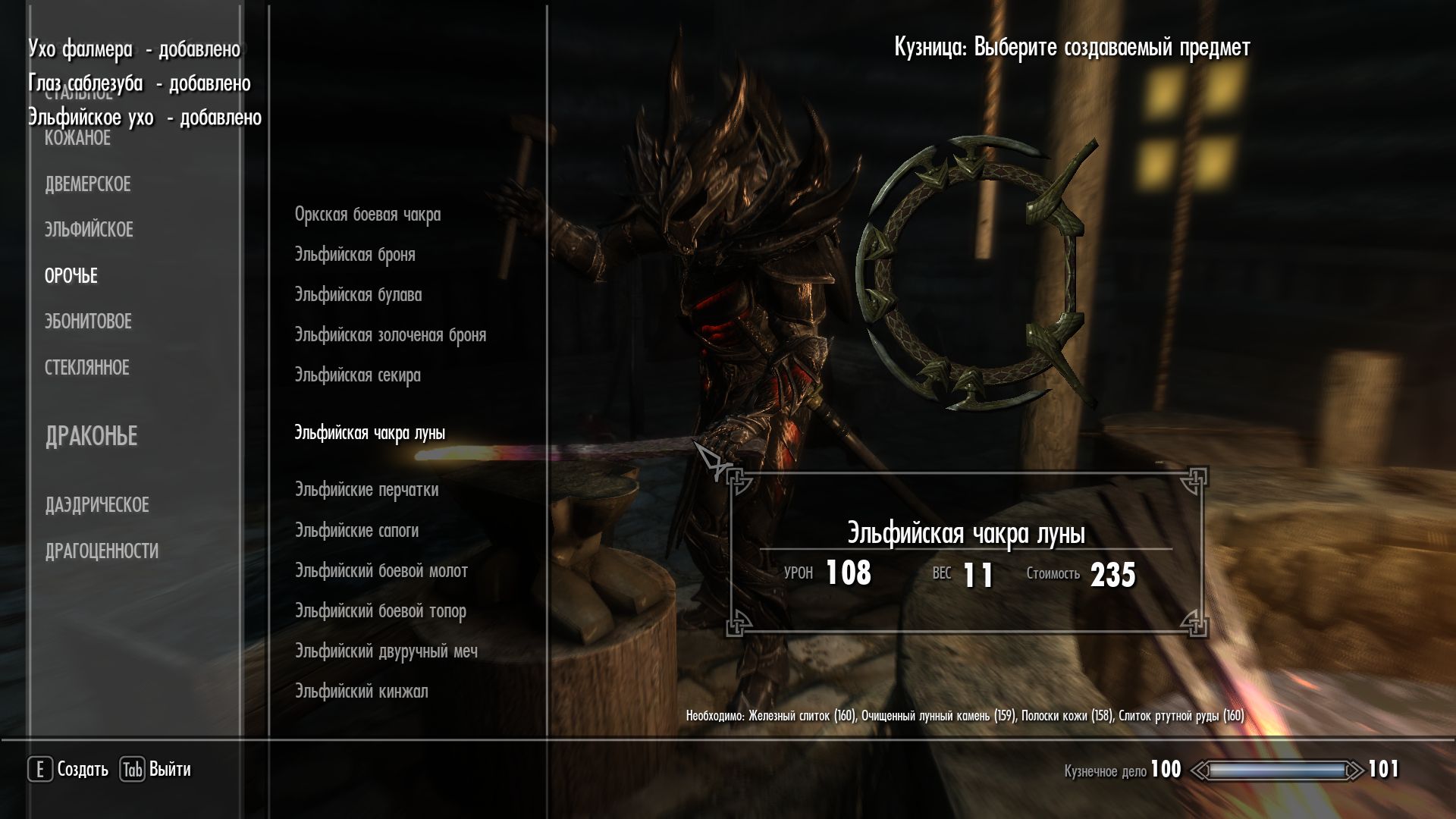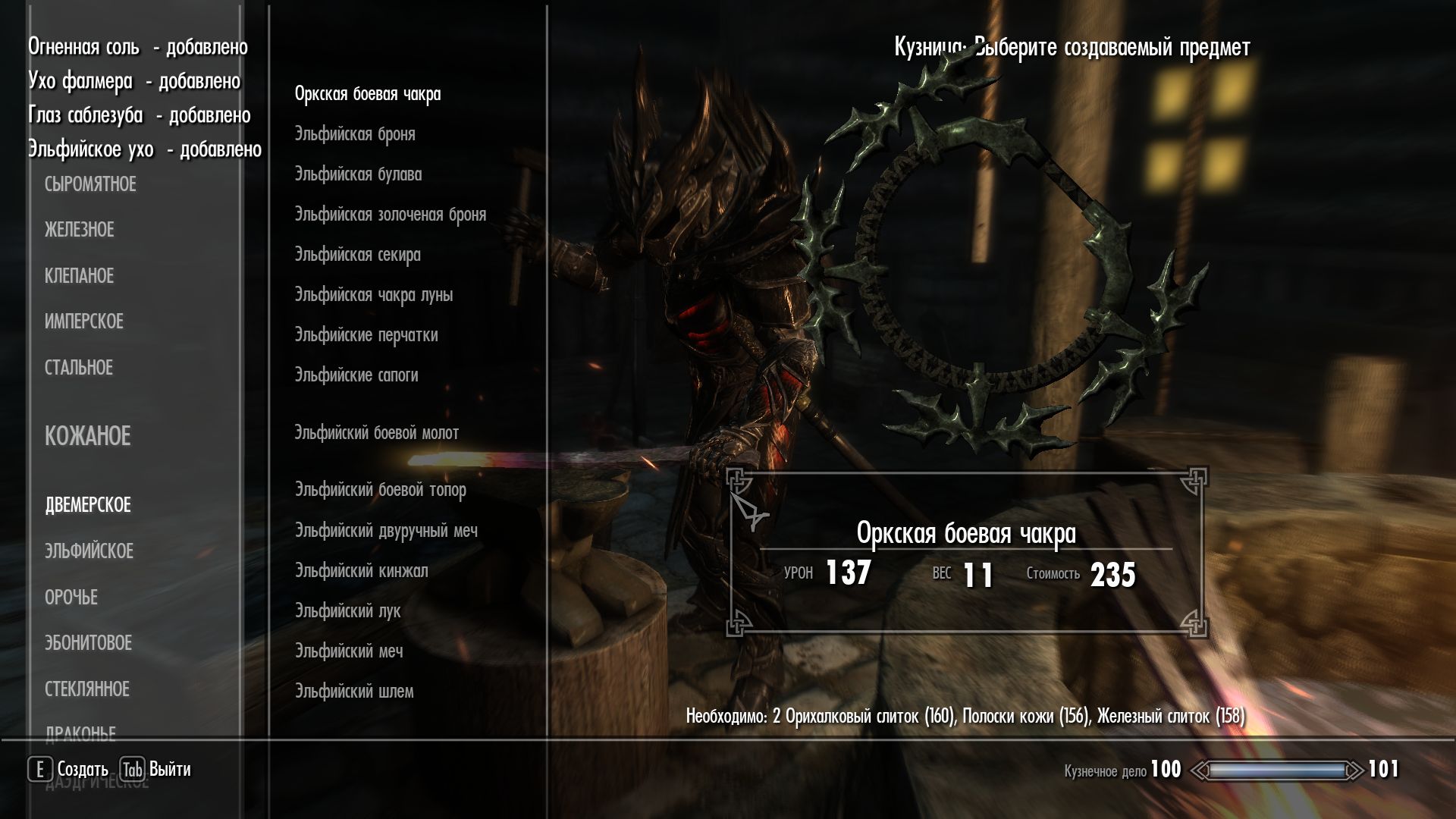Плагин добавляет в игру новое оружие, стилистически напоминающее чакры. Выковать его можно в разных разделах кузницы. Доступны стальные, железные, стеклянные, оркские, эльфийские, даэдрические чакры.
