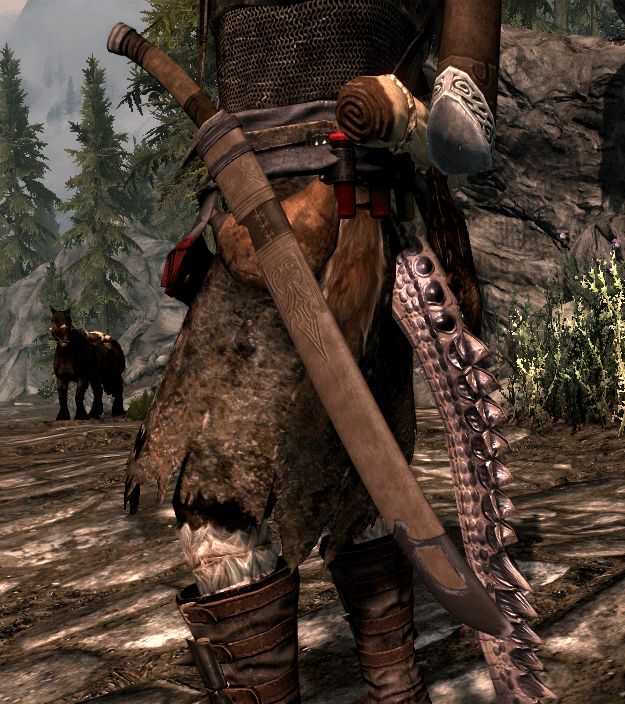 Искривленный клинок этого оружия сильно выделяется среди остального вооружения каджитов, делая его удобным для нанесения рубящих и колющих ударов.