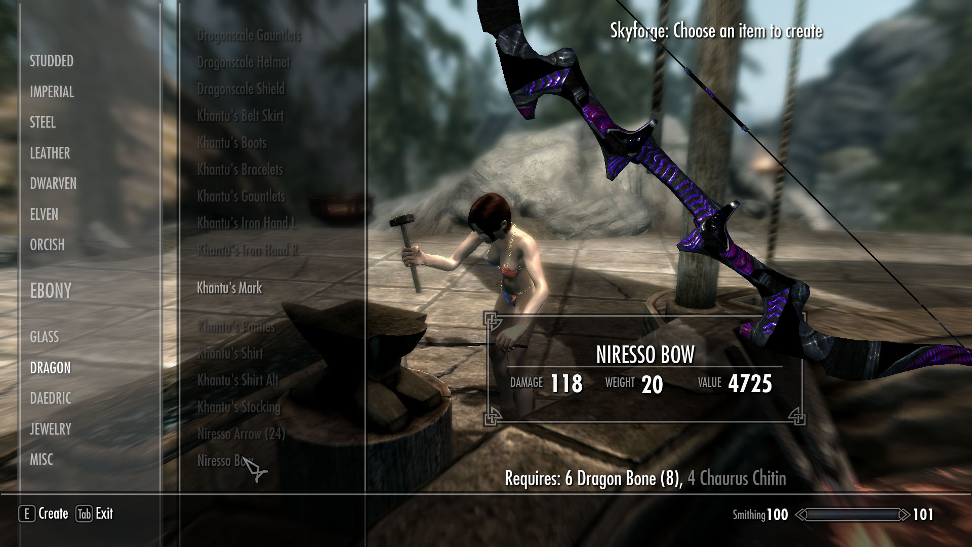 Новый лук и стрелы, которые можно создать в Небесной кузнице в Вайтране. Для создания этого оружия вам требуется перк «Драконьи доспехи», а также немного материалов: 6 драконьих костей и 4 хитина коруса. Для стрел потребуется 2 драконьи кости и 5 хитинов коруса.