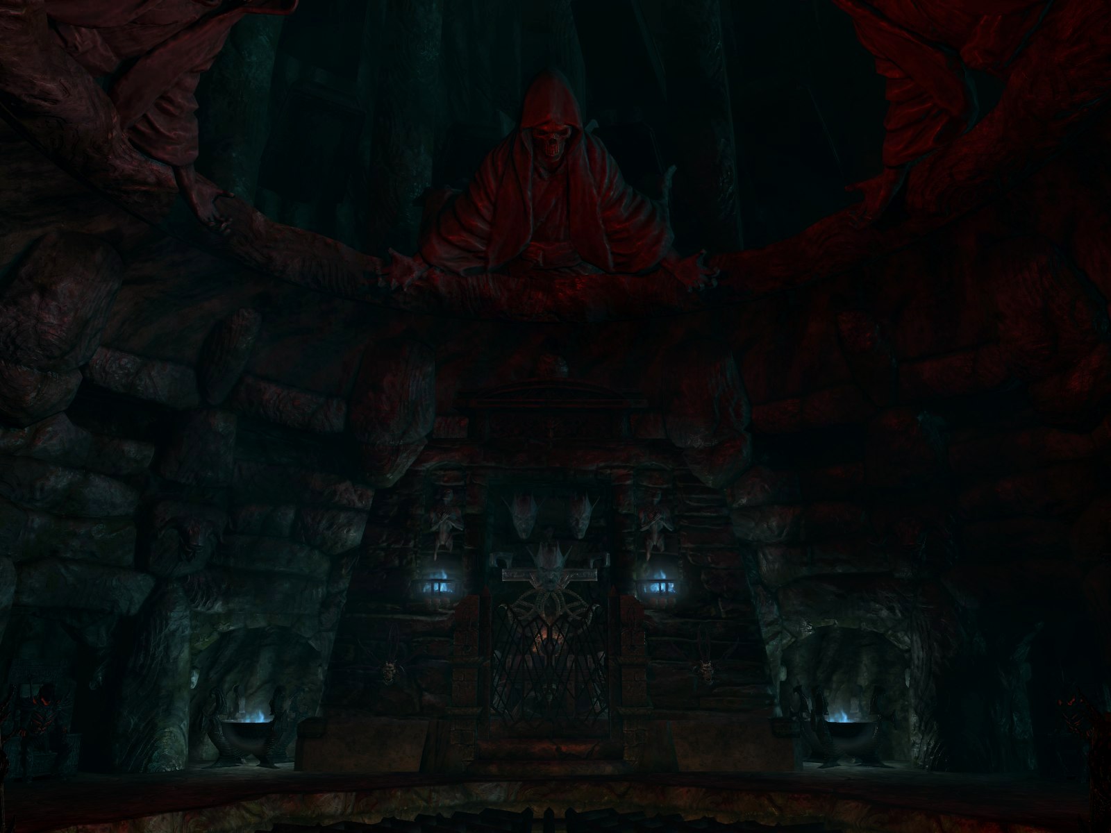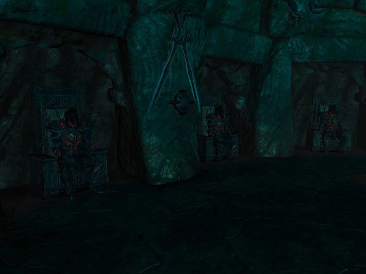 Проверить и сравнить новое оружие вы можете прямо там же. В зале арсенала стоят троны и на них сидят дреморы-лорды, равные по силам боссам из Обливиона. Вы можете напасть на них и оценить новинки в бою, не отходя от кассы.