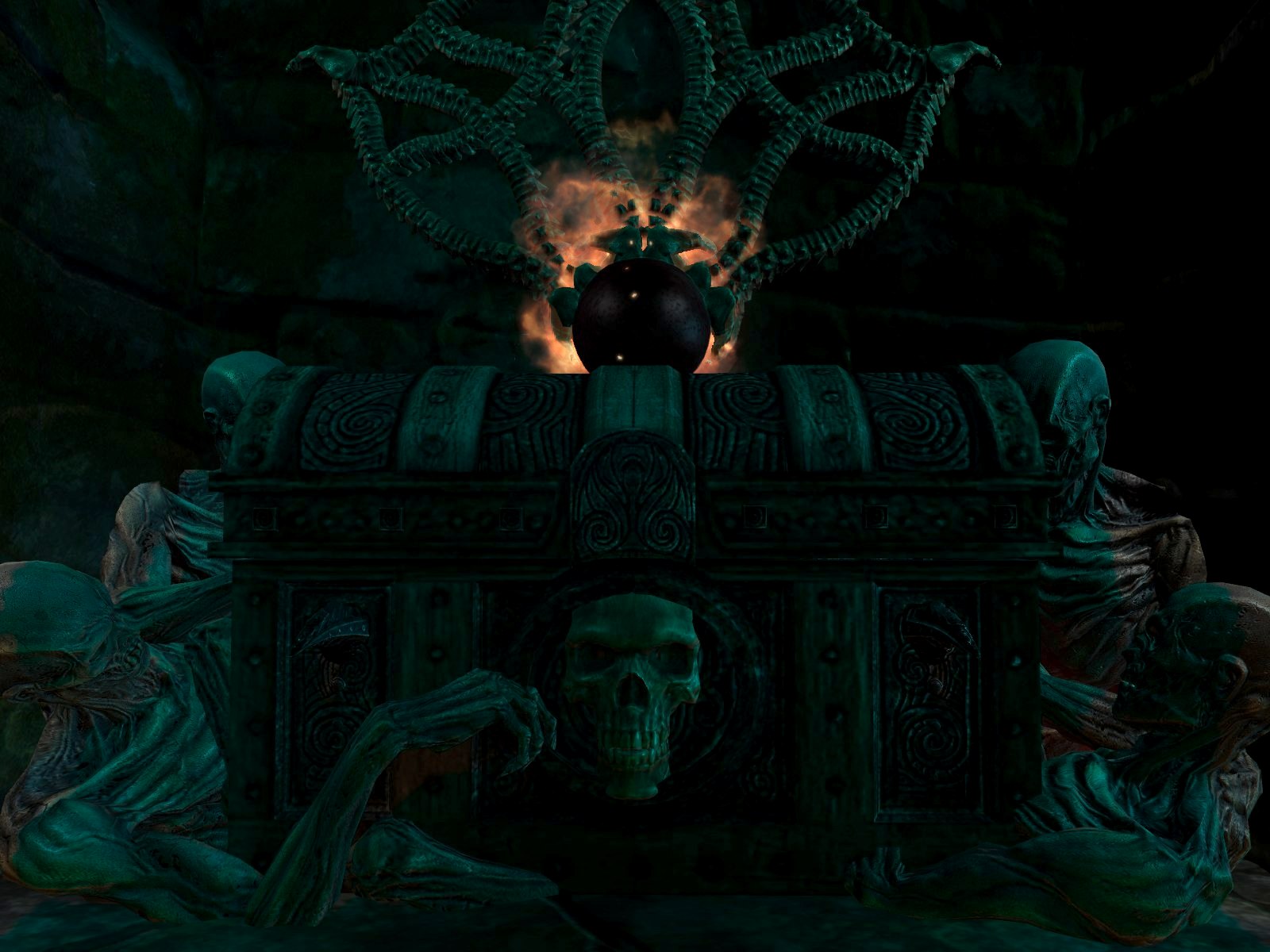 Для обычного Скайрима имеющееся здесь оружие и заклинания будут откровенно читерскими. В арсенал входят: