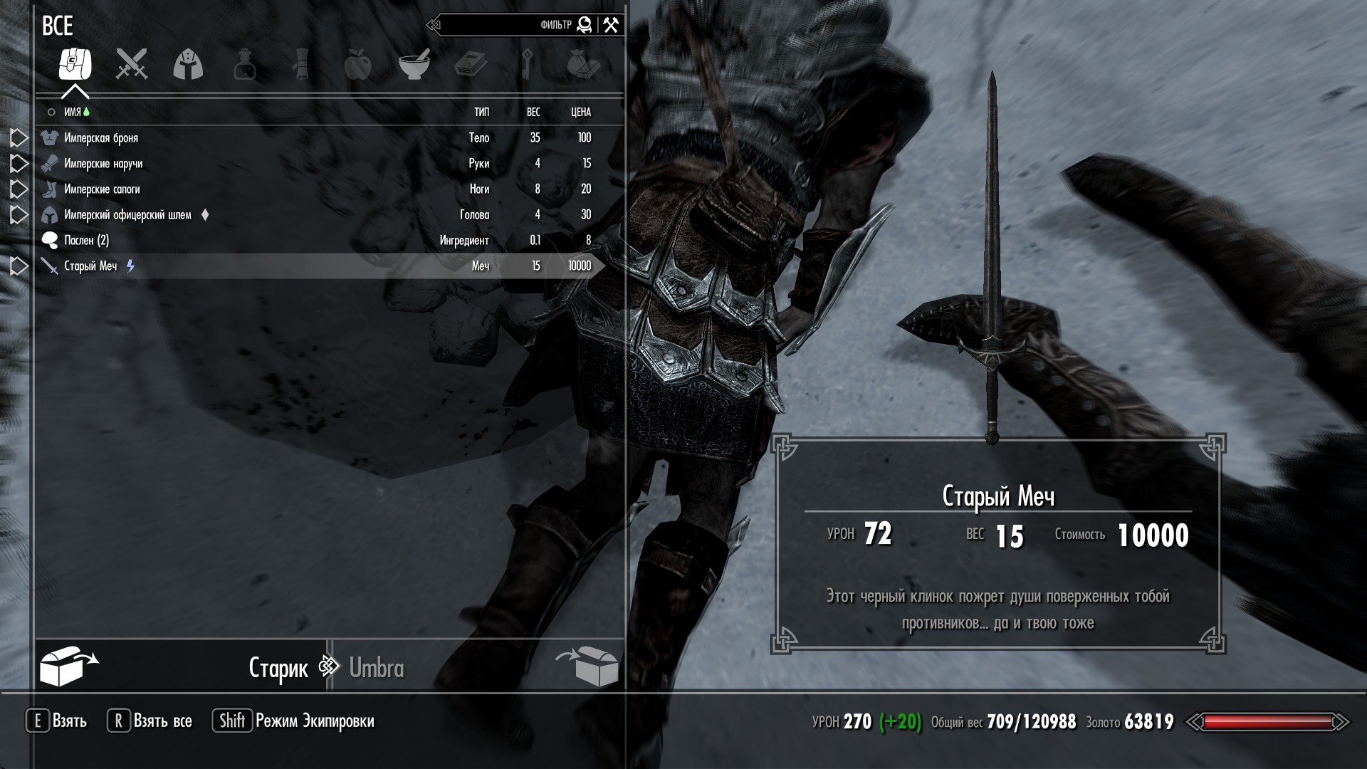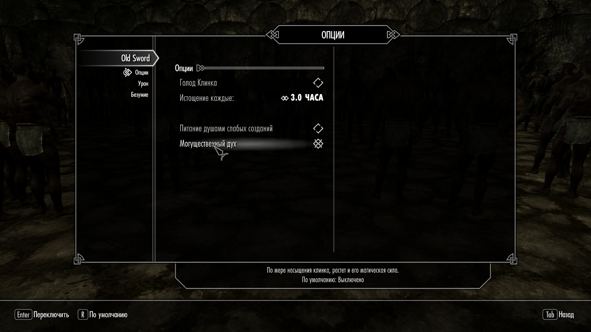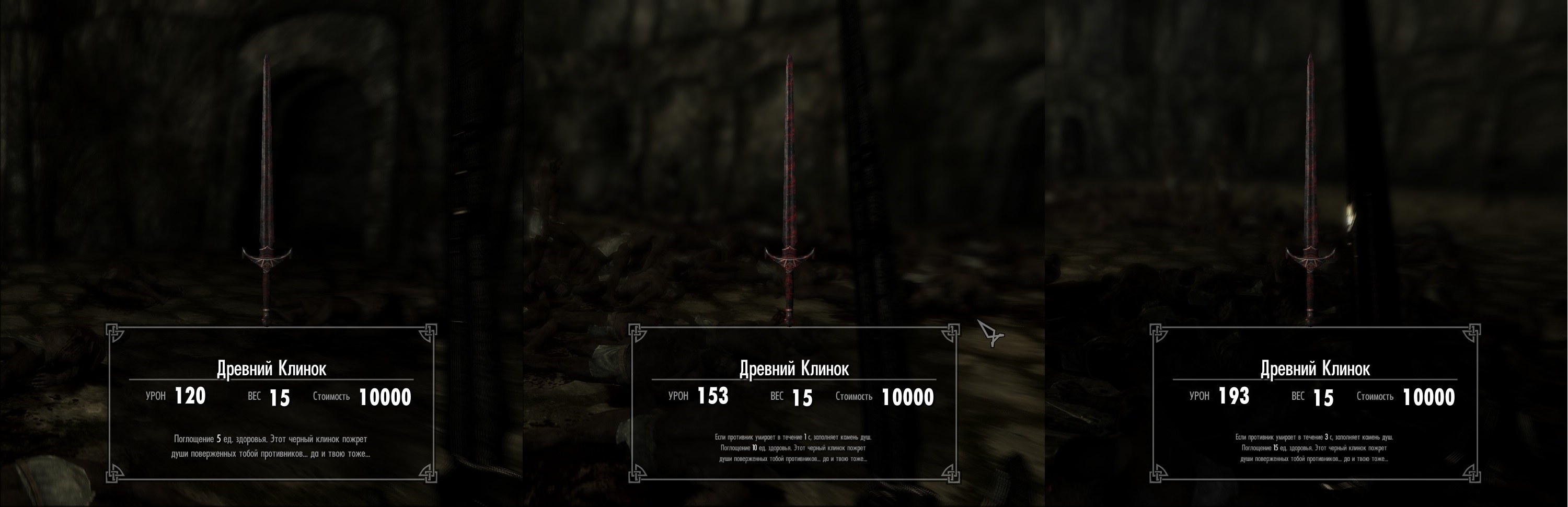 - Надо бы исправить "пожирание душ"... По сути сейчас меч пьет кровь. Хм. Т.е. Если использовать Ловушку Душ и убить НПС "Старым Мечом", то камень наверняка будет заполнен. А это противоречит идее мода.