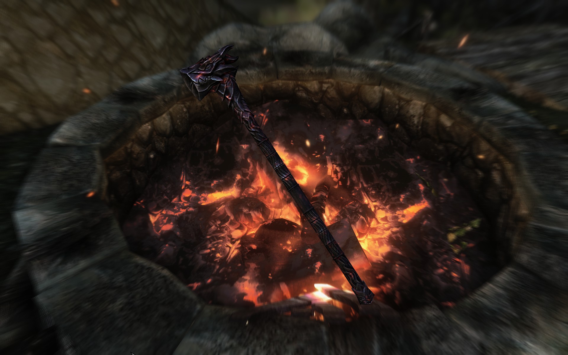 Вариант с зачарованием - Жестокий молот драконьего пламени - можно найти на теле жреца Хевнорака, которого вы победите в Валтуме по ходу квеста "Зло дремлет". Увы, если вы уже выполнили этот квест, найти молот вам, по всей очевидности, не удастся.