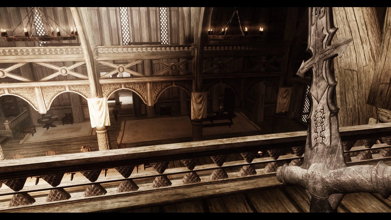 Да автор, похоже, играет на низком качестве графики. Внимание на обстановку - мебель, ковры, пол... Хотя да, текстура растянута сильно.