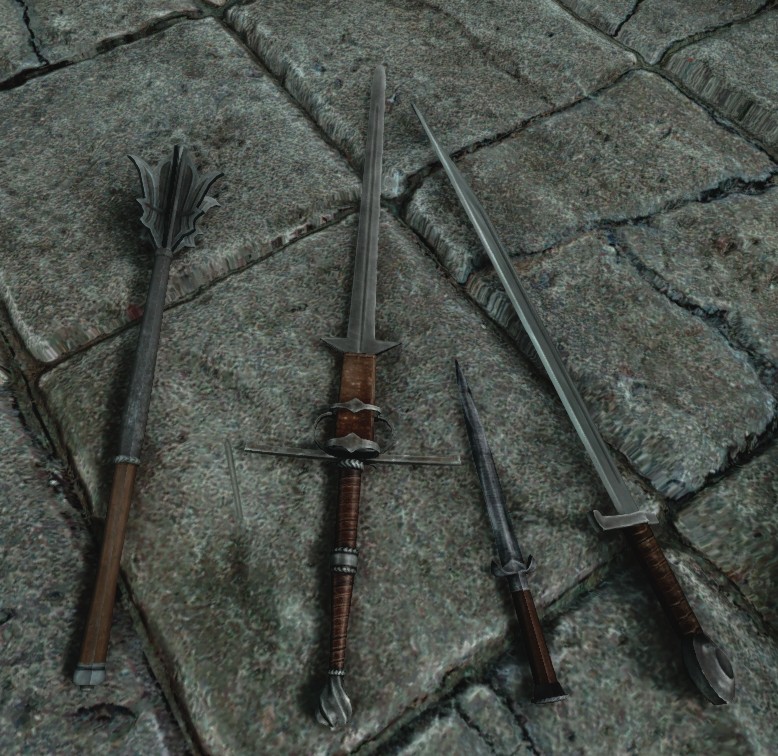 Мод добавляет в игру 4 ноых орудия: двуручный меч Роше, фальшион Роше, булаву Роше, кинжал Роше. Для создания оружия потребуется наличие перка "сложные типы брони", оружие создается в любой кузнице в разделе эбонитового.