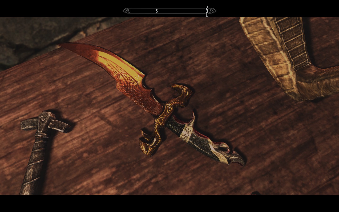 Симпатичный дагер. Я их вообще люблю) Весьма неплохо смотрится и вписывается именно в даэдрическую линейку. Был бы не плох в роли "Бритвы Мерунеса". Качну, пожалуй. Спасибо.
