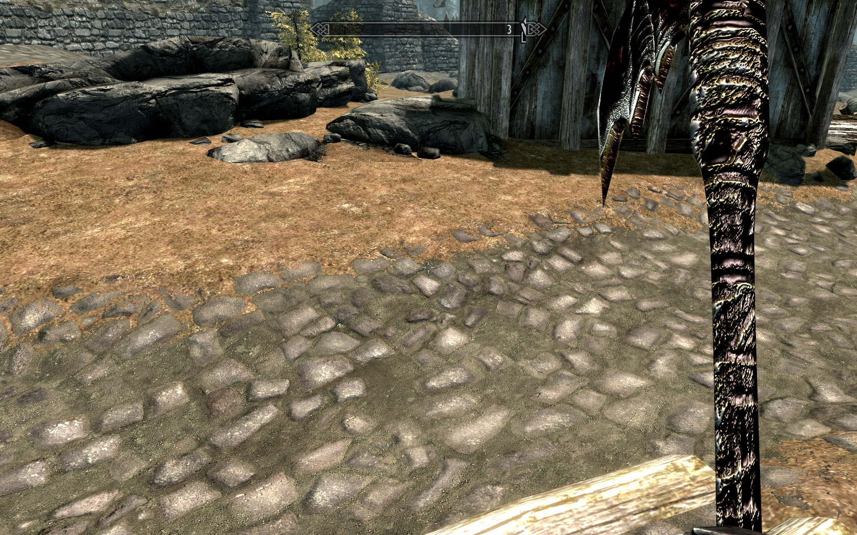 1. Размеры модели были поменяны под стать скайримовским (в Морровинде он был скорее размером со скайримовский одноручный топор)