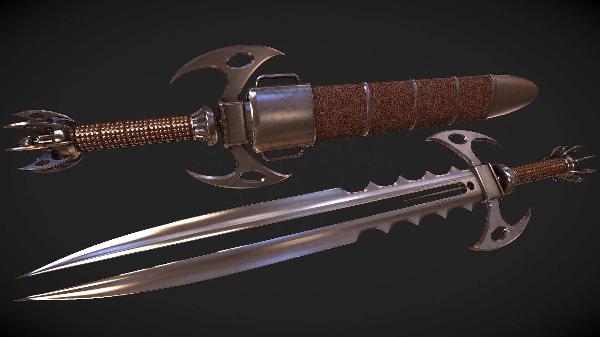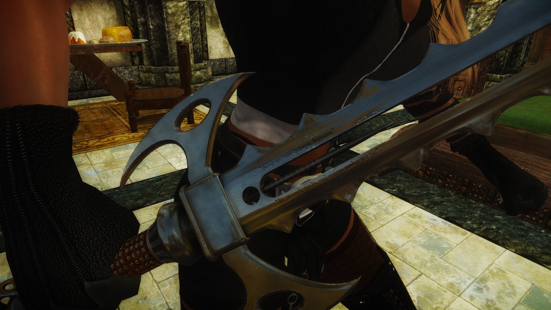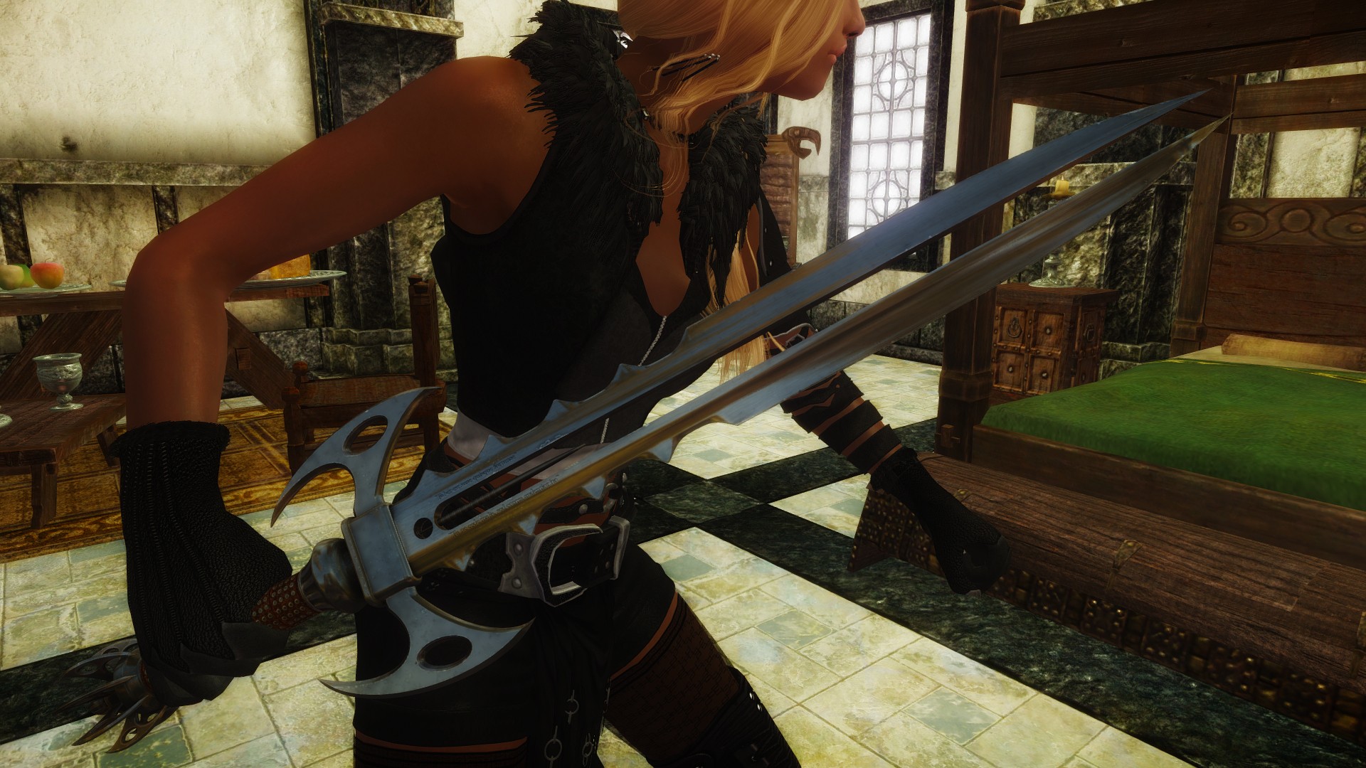 Действительно-сильно смахивает на тактический клинок какого-нибудь спецназовца годов эдак 2050-ых.В нью-Вегасе ему было б самое место.Ему бы ещё присобачить эффект на шанс обезоружить противника-как-никак пространство между лезвиями вполне может использоваться для захвата вражеского меча.Кстати правильнее было бы перевести "небесная волчица",но это уже пустяки.