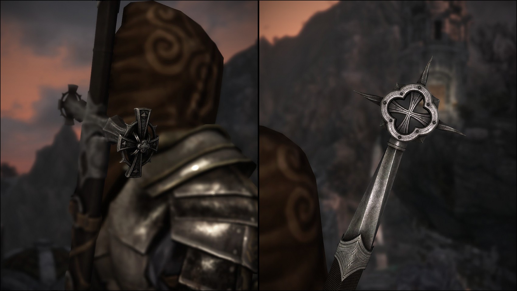 В обновленной версии вы найдете клинок Динамис в одноручном и двуручном исполнении, а также кинжал Заступник, помимо стандартной версии все оружие имеет зачарованные вариант. Помимо этого доступна защитная версия Заступника.