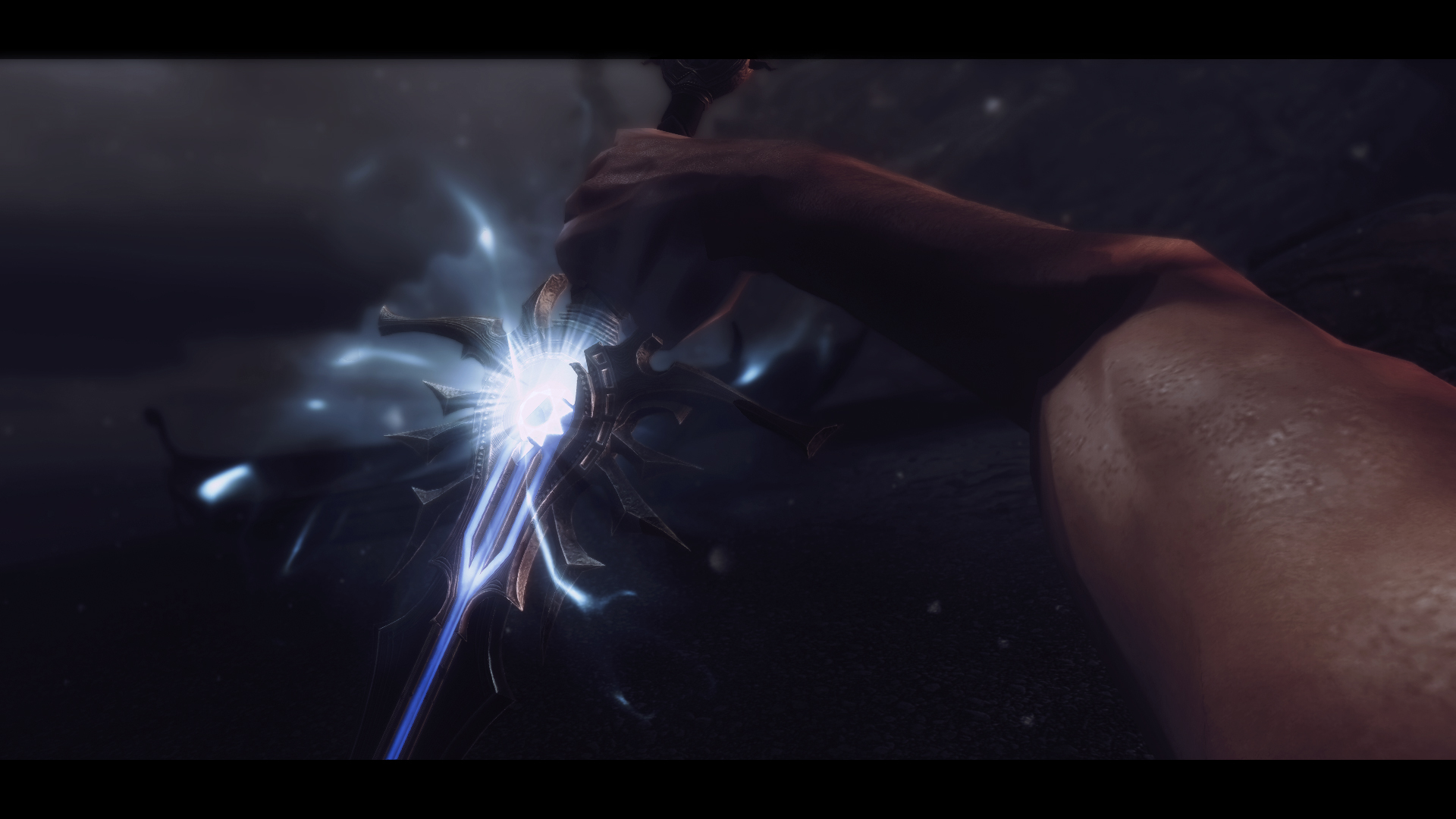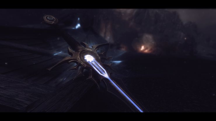 1. Рассекатель небес зачарован на нанесение электрического урона и имеет красивый визуальный эффект при ударе, уродливое свечение от зачарования отсутствует.