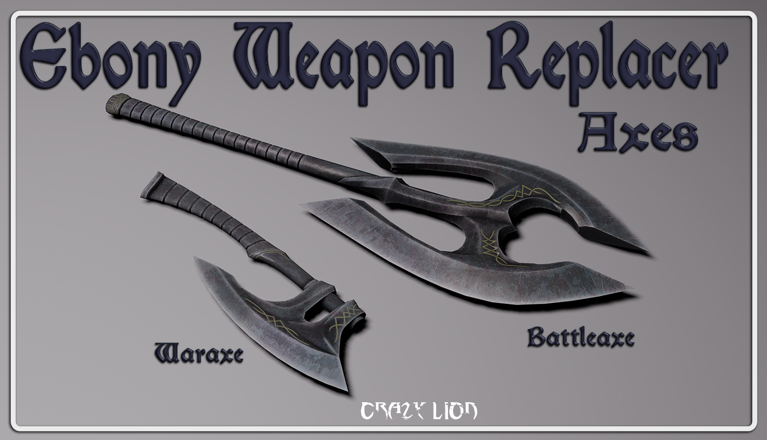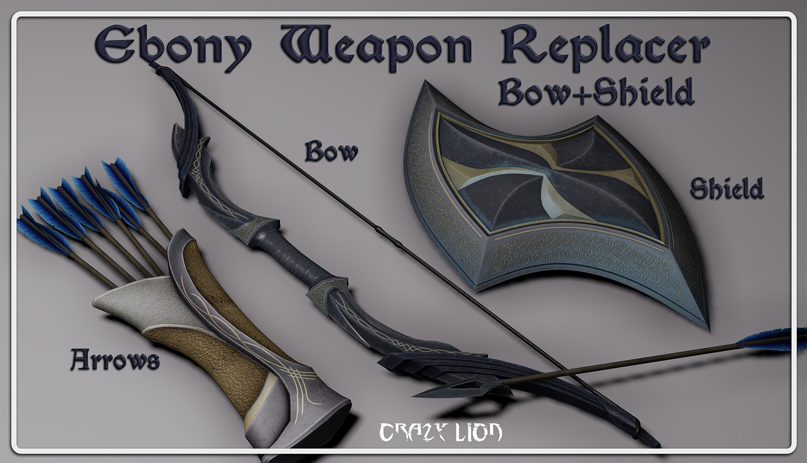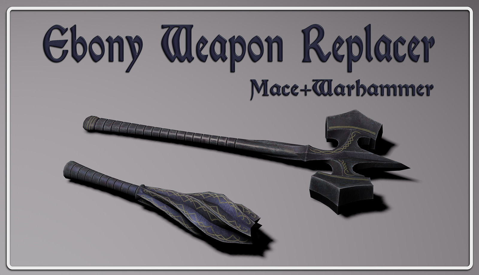 Этот мод добавляет новое эбонитовое оружие или изменяет имеющееся (решать вам). В моде доступны: кинжал, меч, двуручный меч, секира, боевой топор, булава, щит, лук, боевой молот.