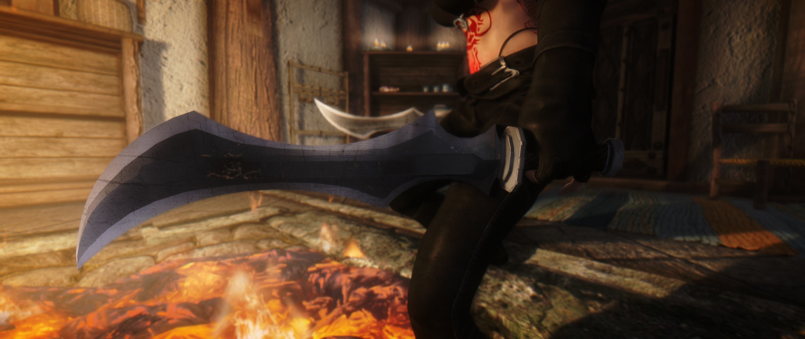 И правда багованное. Шэйп используемый для отображения крови вообще от другого клинка. Чтобы его убрать, нужно в Нифскопе удалить два NiTriShape отвечающих за это. BloodEffects и BloodLighting. ЛКМ->Block->Remove Branch. Иначе только в 3Д-редакторе.