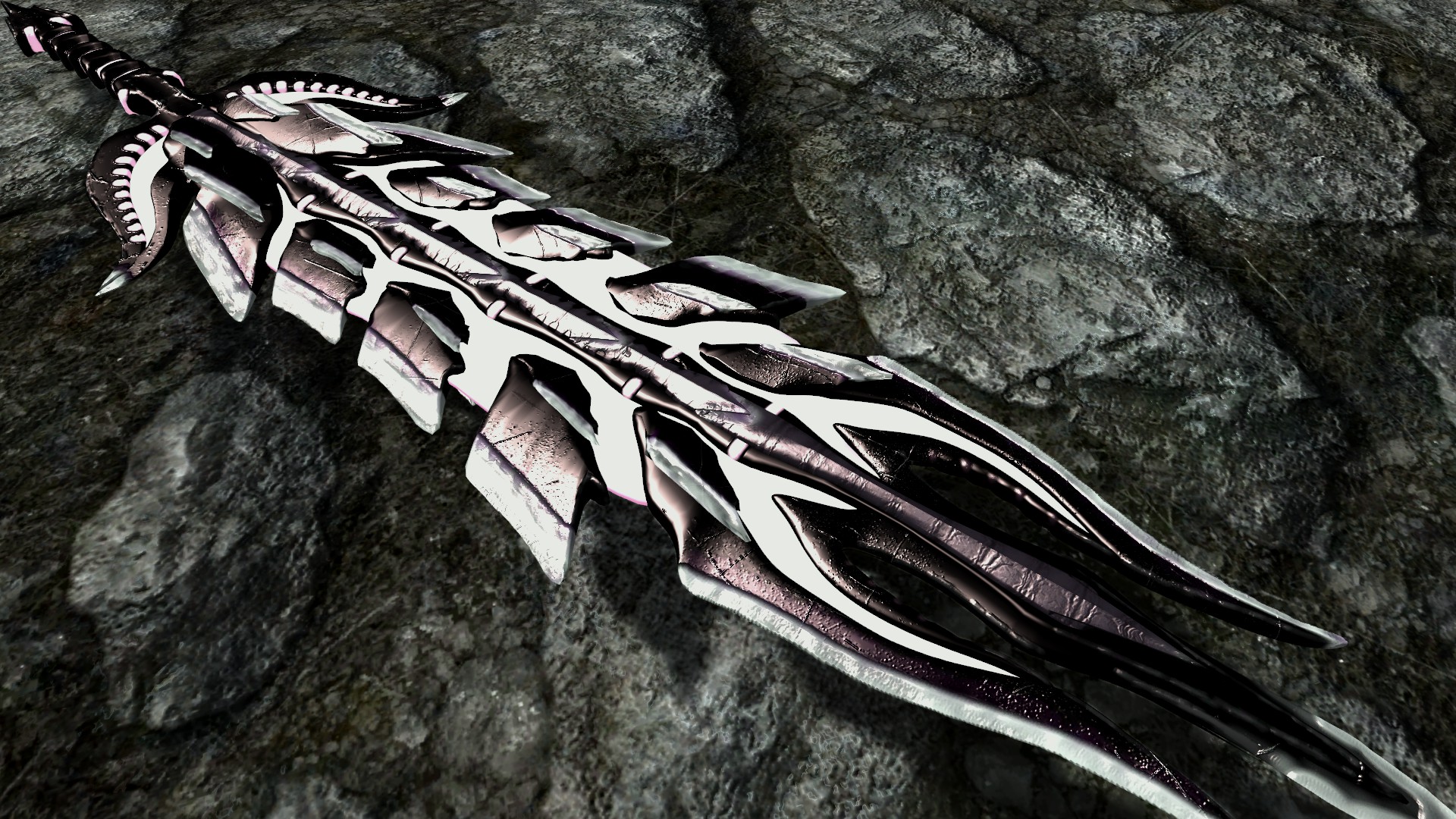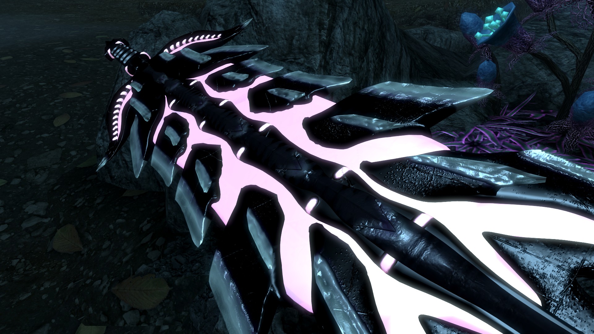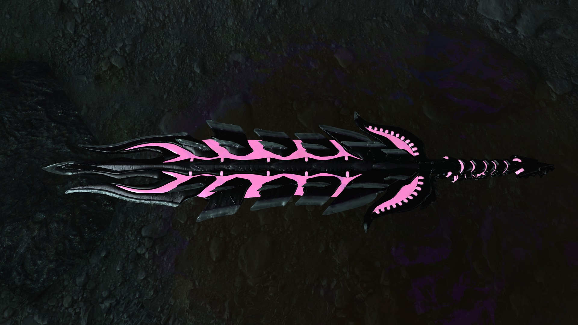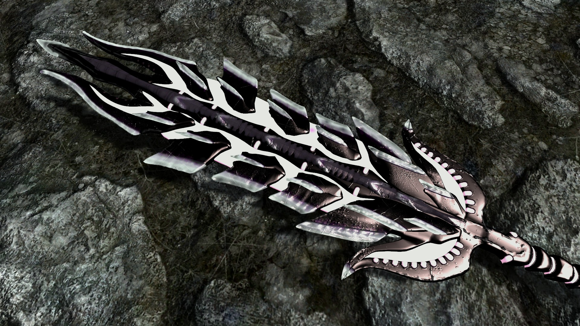 Мод добавляет в Скайрим красивый двуручный меч из игры Monster Hunter, потому-то и такой здоровый. По характеристикам данное оружие немного превосходит даэдрический двуручный меч. Также меч обладает розовым свечением, которое особенно хорошо видно в темноте.