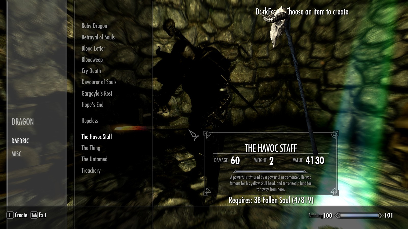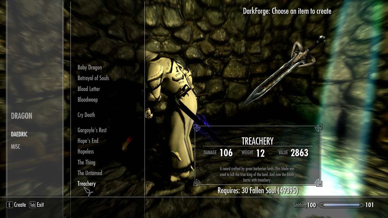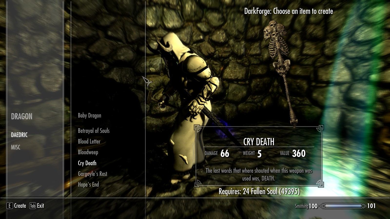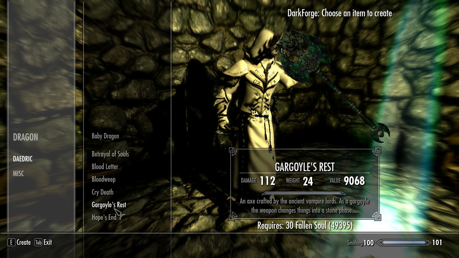 - Для создания предметов понадобятся павшие души.