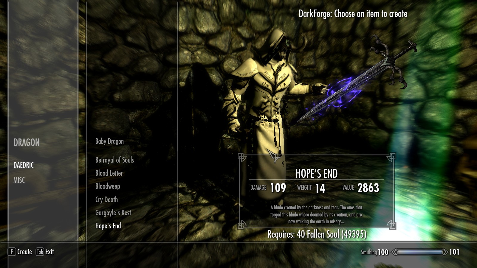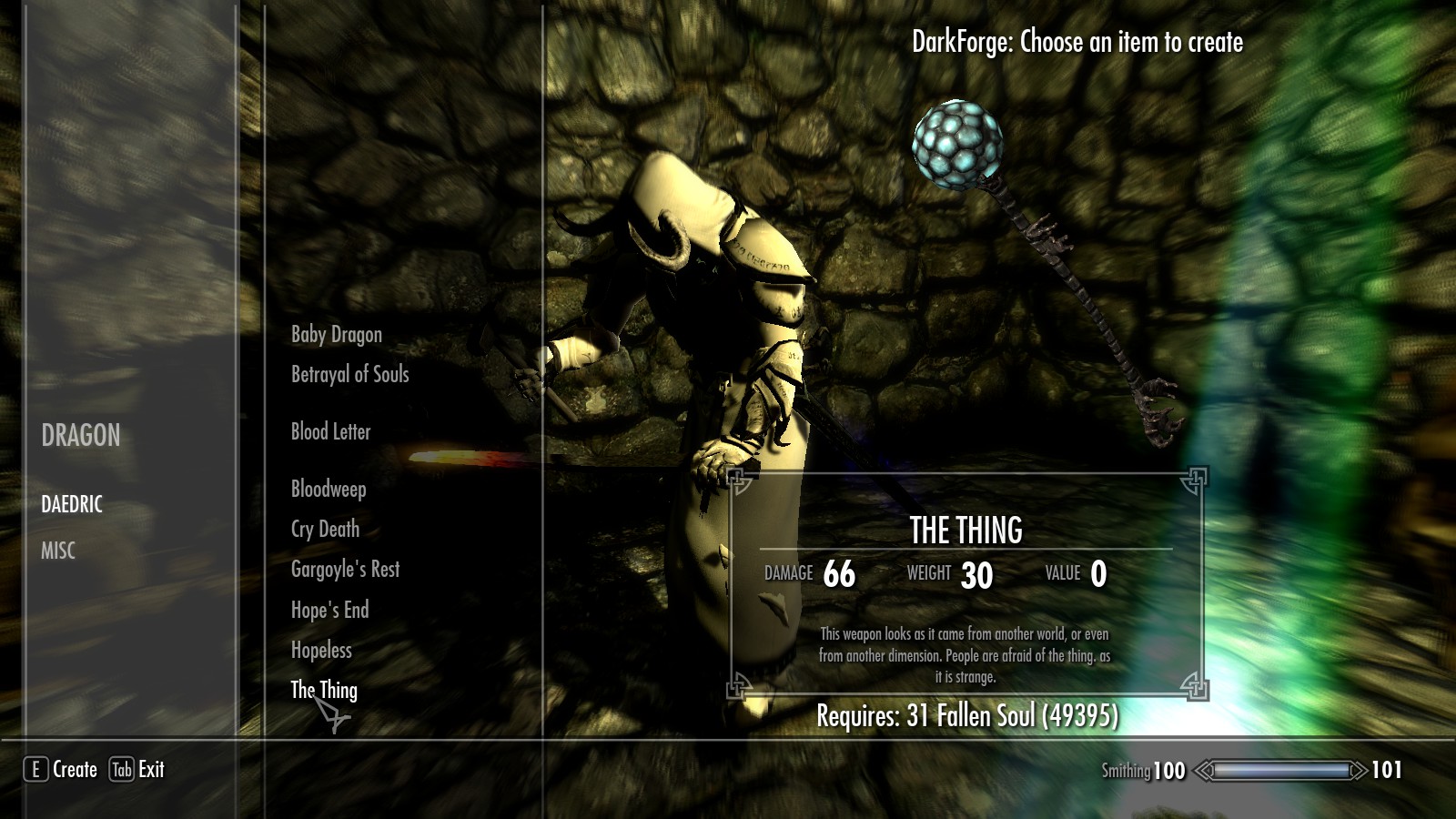 - Все предметы можно выковать в кузне тьмы и ужаса.