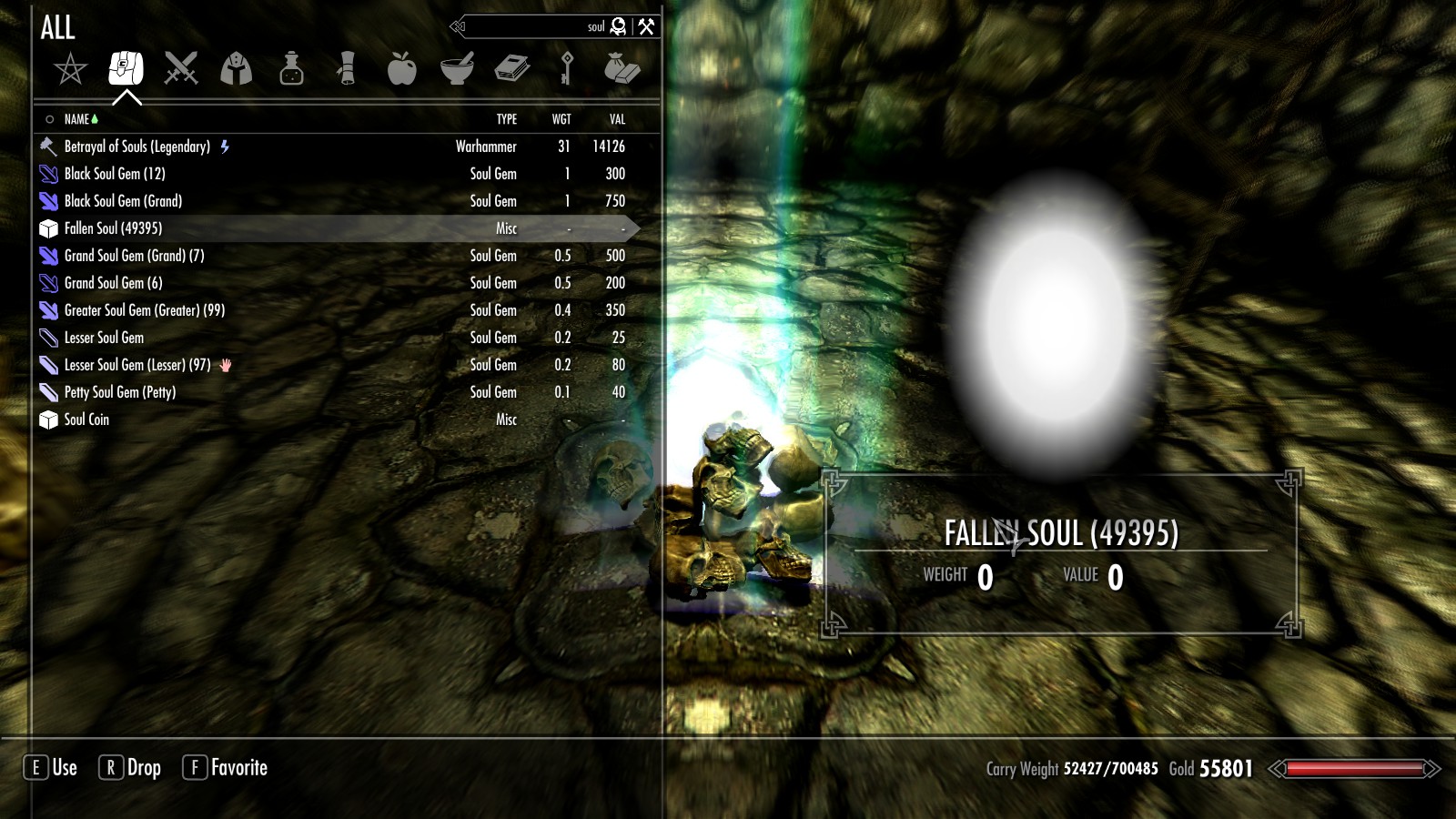 - Павшие души можно добыть при победе над скелетами, драуграми и дымками.