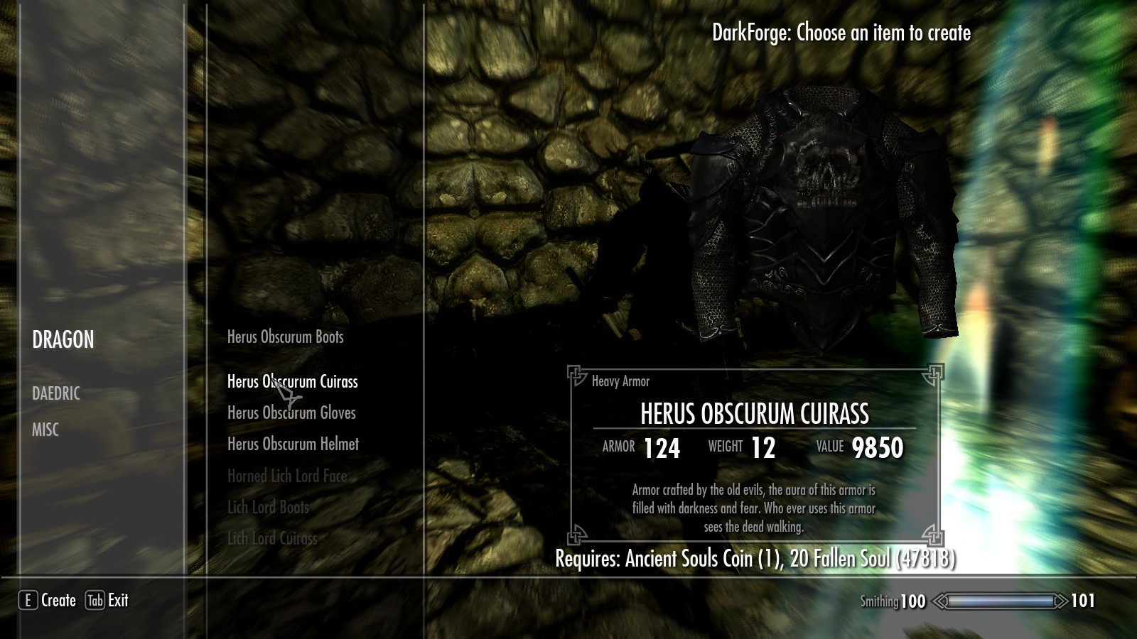 Мод добавляет в игру устрашающие оружие и броню, пропитанные тьмой и злобой стародавних времен.