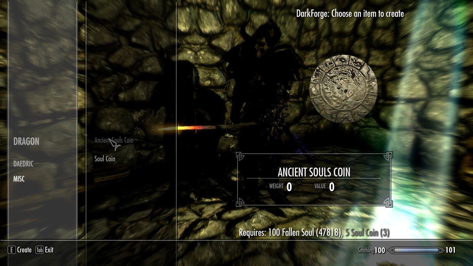 -- Древние монеты душ (создаются в кузне)