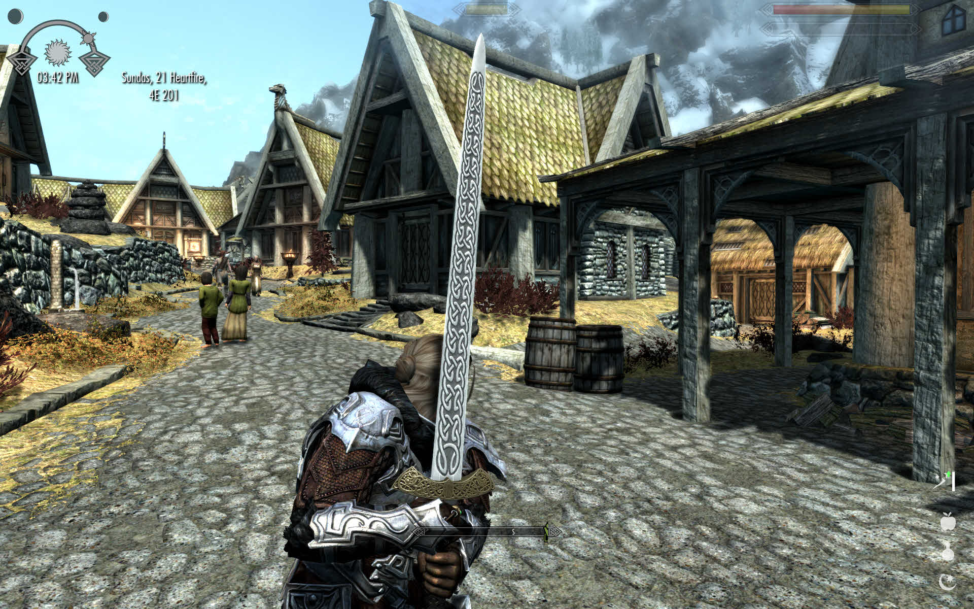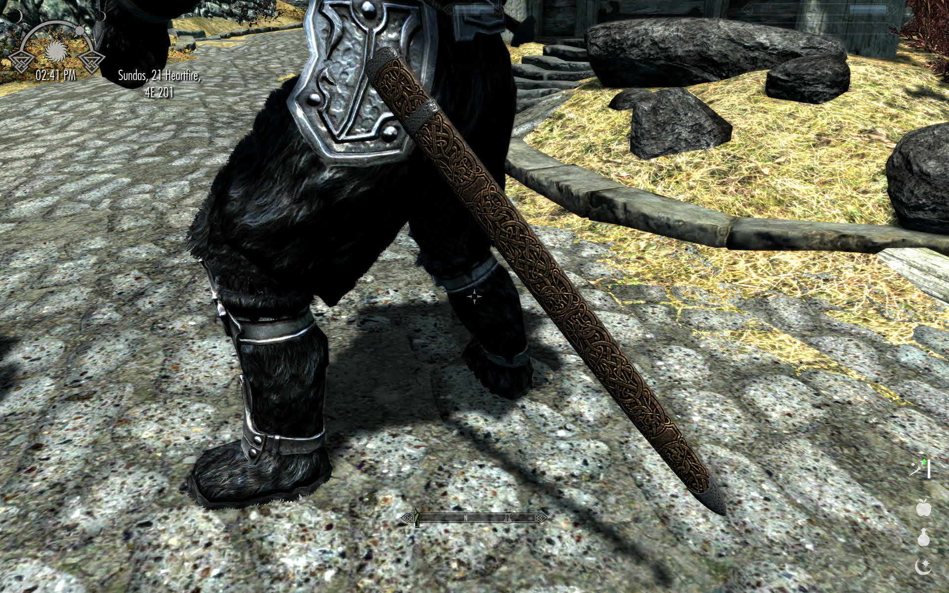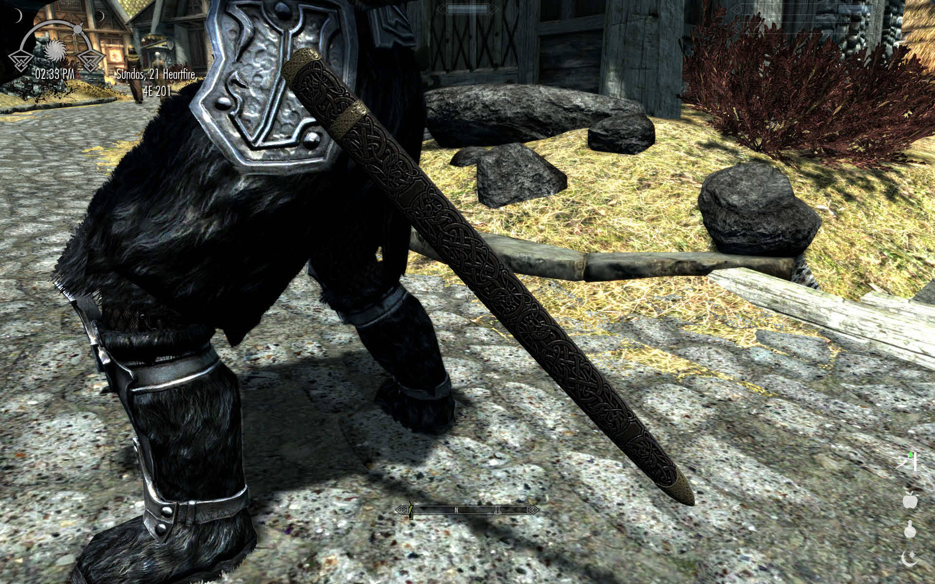 Серьёзное дело-главное оружие одновременно красивое и выглядящее пригодным для реального боя.Вот только есть 2 проблемы-во-первых излишество узоров на клинках,а во-вторых-мечи Ульфберта мог ковать только и исключительно Ульфберт,но никак не хоть трижды дуракин.