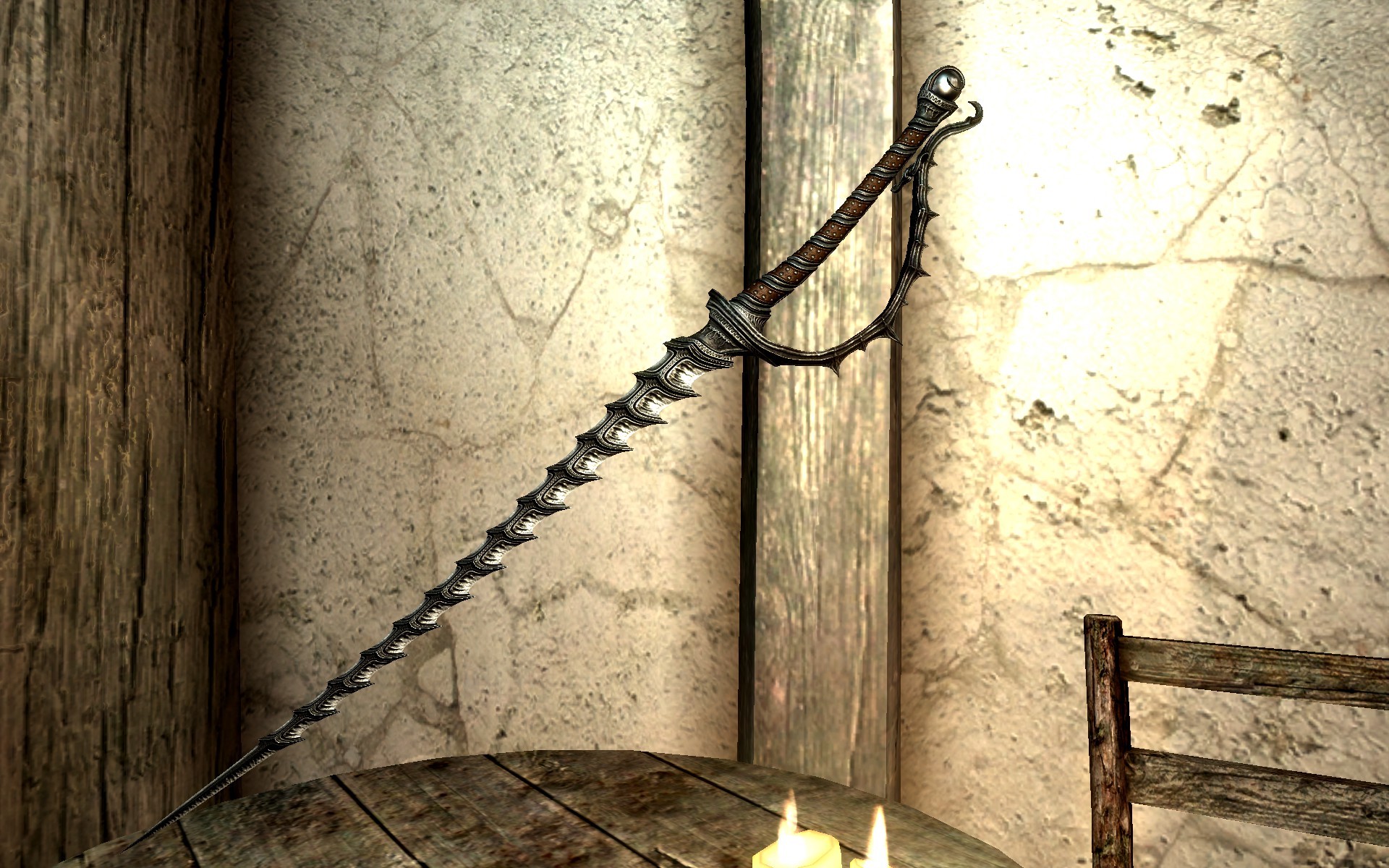 Мод добавляет в игру рапиру и 3 ее вариации. Оружие сбалансировано под высокоуровневых персонажей, урон чуть меньше, чем у даэдрического, зато повышены скорость и критический урон. Создать его можно в любой кузнице, разделе даэдрического. Все оружие можно улучшить до состояния "пробужденного", после чего оно станет темнее и начнет светиться, урон у пробужденного оружия чуть выше (+1 к базовому урону). Все оружие снабжено ножнами.