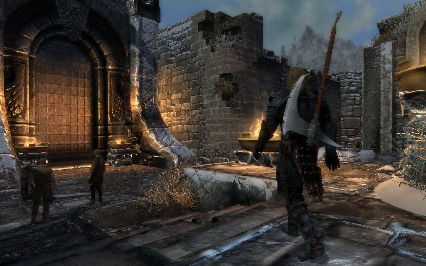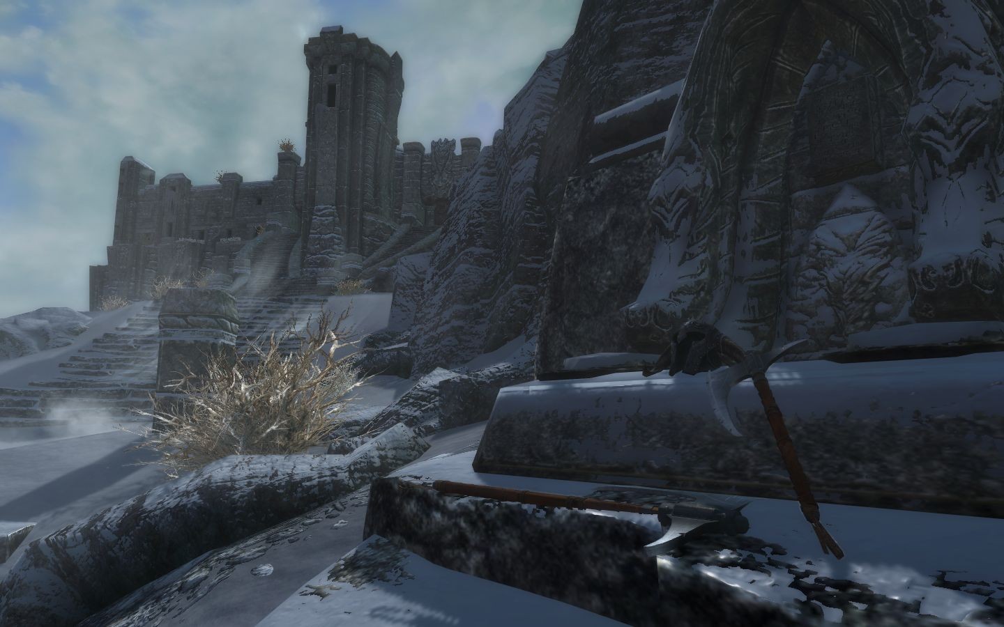 Добавляет полукруглый топор Стражи Рассвета, двуручный и одноручный, конечно же с рунным зачарованием Стражи Рассвета и слегка измененной текстурой. Полукруглый топор Стражи Рассвета нельзя выковать, его можно исключительно найти в кузнице Форта. Также заменен Папашин топор Агмейра