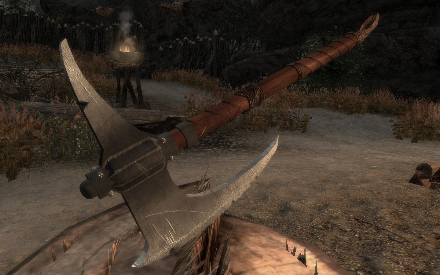 Мод добавляет в игру великолепный варварский полукруглый топор, который отлично подойдет викингу или охотнику на вампиров. В наличии одноручная и двуручная версии топора, обе из которых вы сможете выковать в кузнице, раздел стального. По урону данное оружие слегка превосходит обычные стальные топоры и секиры. Высококачественная текстура в разрешении 2048.