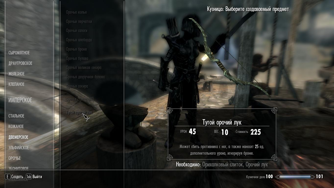 Как-то после установки мода на оружие из Oblivion во время игры мне попался лук, пробивающий броню (нанося доп. урон) и сносящий противника с ног (с разумной вероятностью). Характеристики были довольно неплохие, но вот шкурка древнего нордского лука меня никак не радовала. А уж бегать с ним и, допустим, в эбонитовом снаряжении (да и в любом другом) совсем не по фен-шую. Поэтому я по-быстрому загрузил Creation Kit. (насколько это возможно за городом) и начал творить. Изучив зачарование и его составляющие эффекты пришел к выводу, что автор сам написал данное зачарование и эффекты к нему, т.к. в оригинальном Skyrim'е их не оказалось. И дабы не оскорблять автора бесстыдным копированием, я составил по такому же принципу чары и эффекты, которые использовал в своем моде.